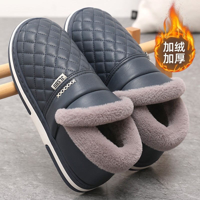 防水棉拖鞋男士冬季2025加绒加厚外穿保暖老人棉鞋男款防滑居家