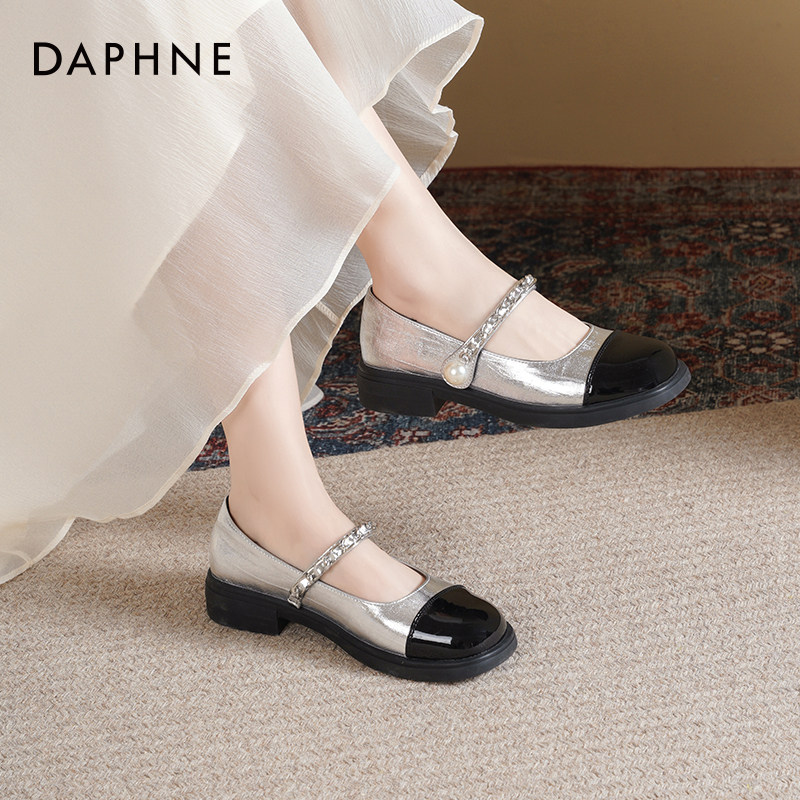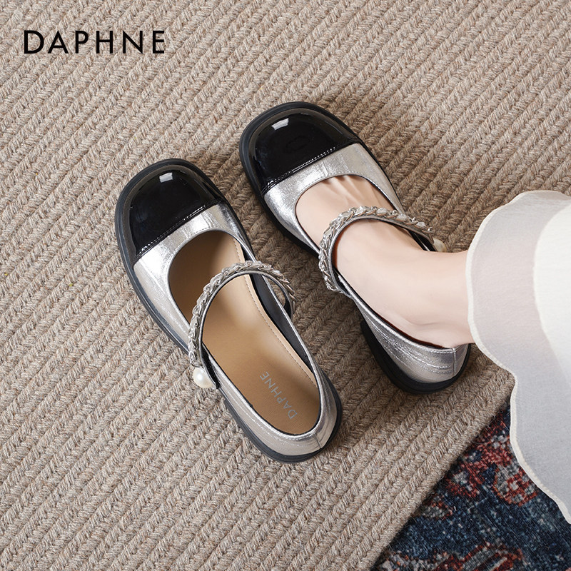 达芙妮法式玛丽珍鞋女2026新款春复古皮鞋高跟鞋小香风银色单鞋女