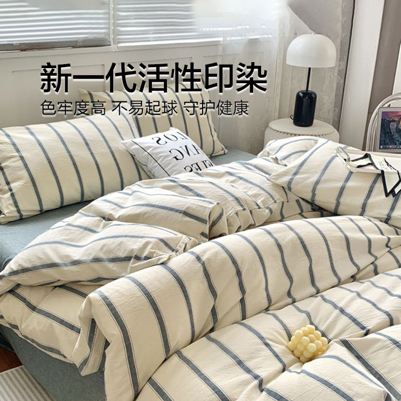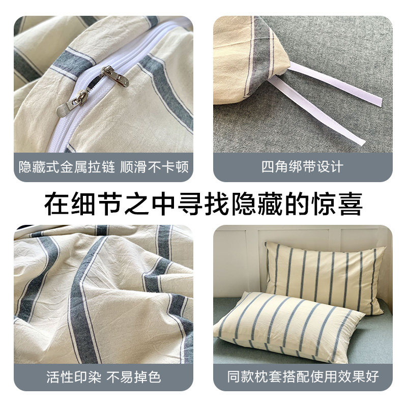 A类水洗棉双层纱四件套被罩非全棉纯棉床单人学生宿舍被套三件套