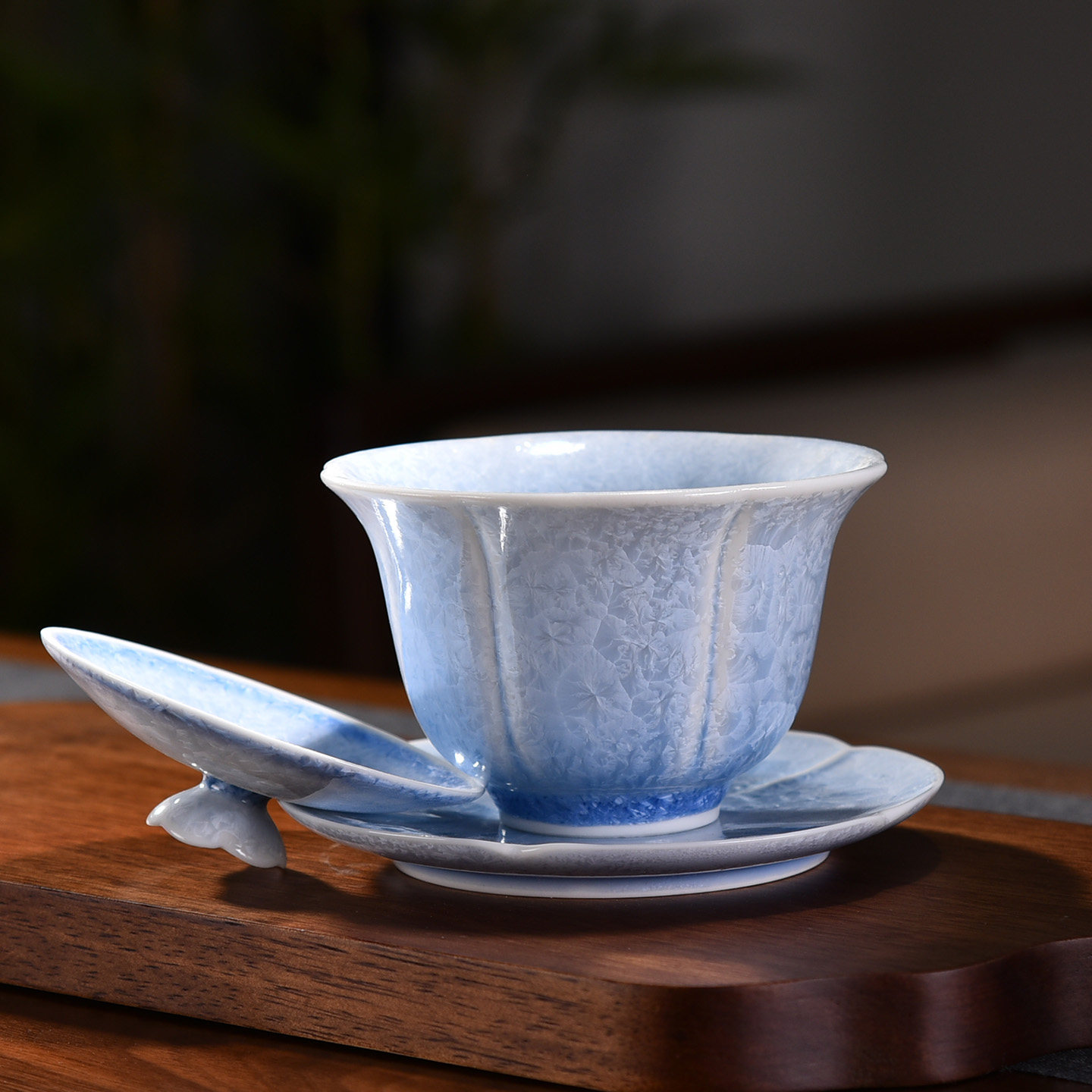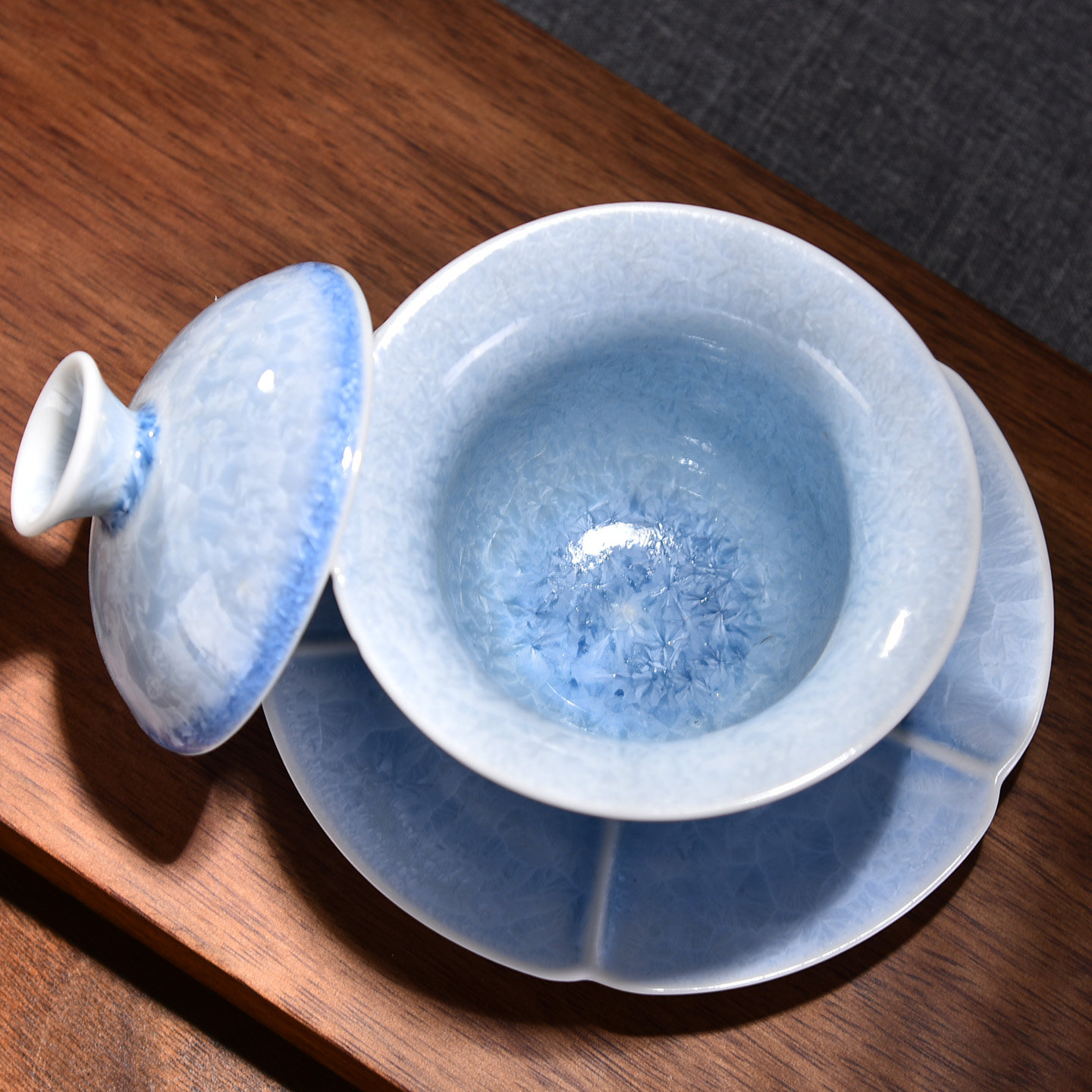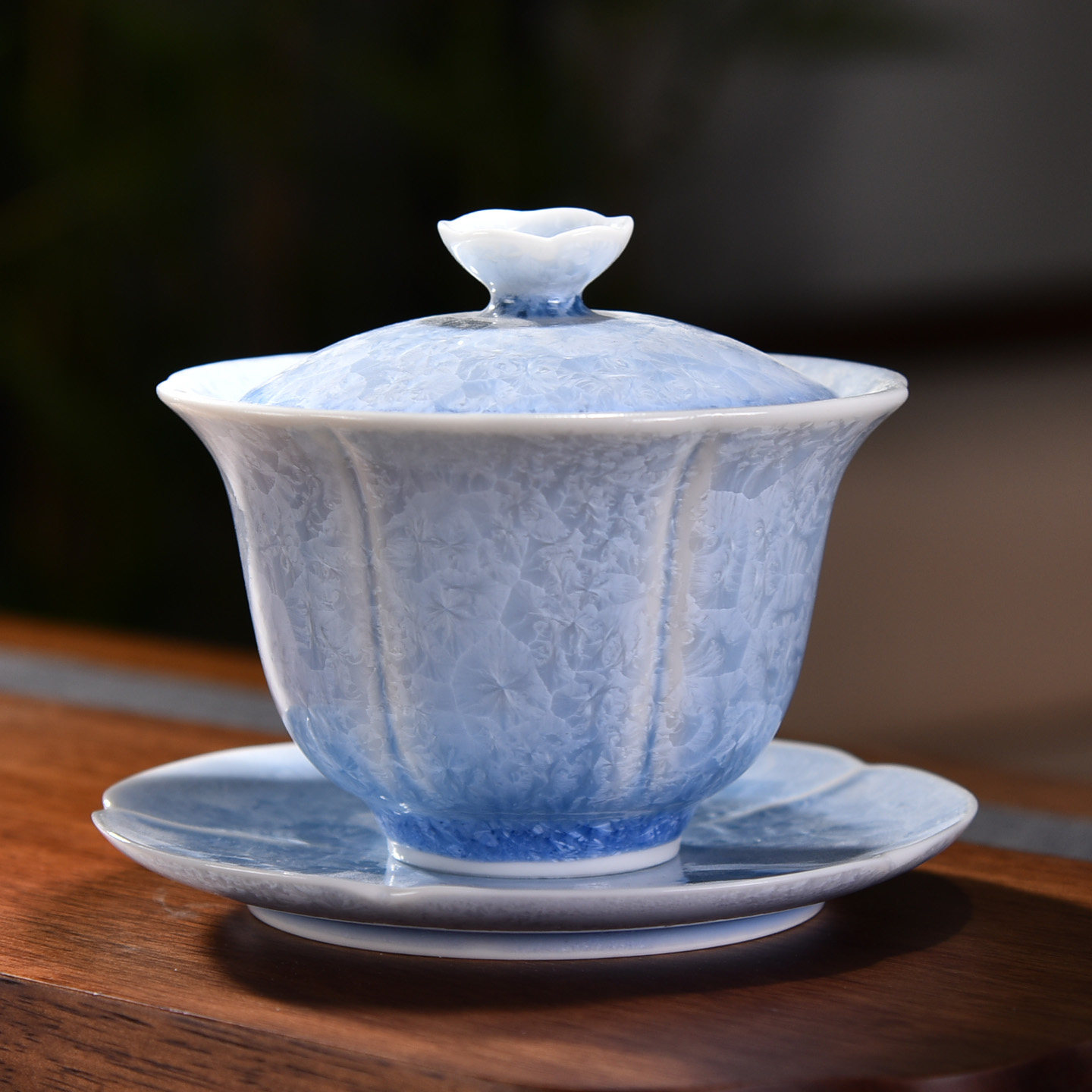 窑变结晶釉三才盖碗茶杯茶碗大号茶具陶瓷泡茶碗功夫茶具三件套