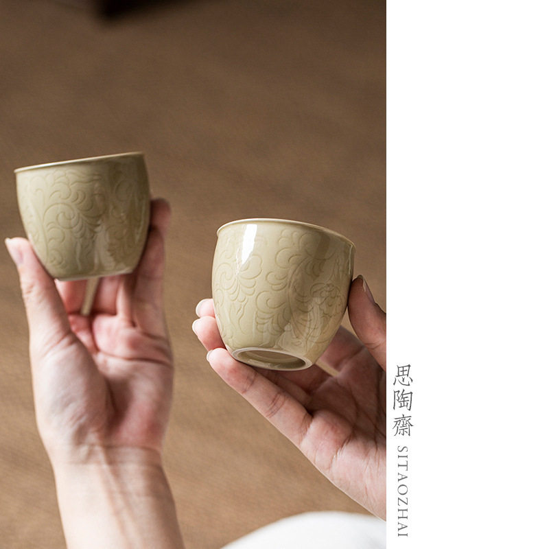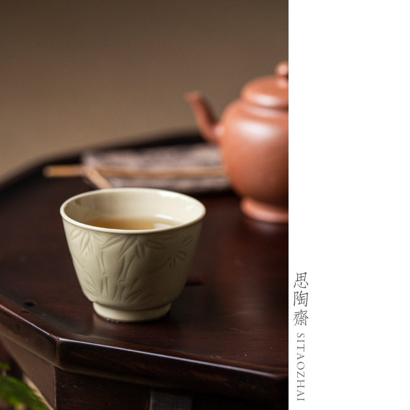 定窑黄主人杯陶瓷茶杯品茗杯功夫茶具小单茶杯手工中式复古喝茶盏