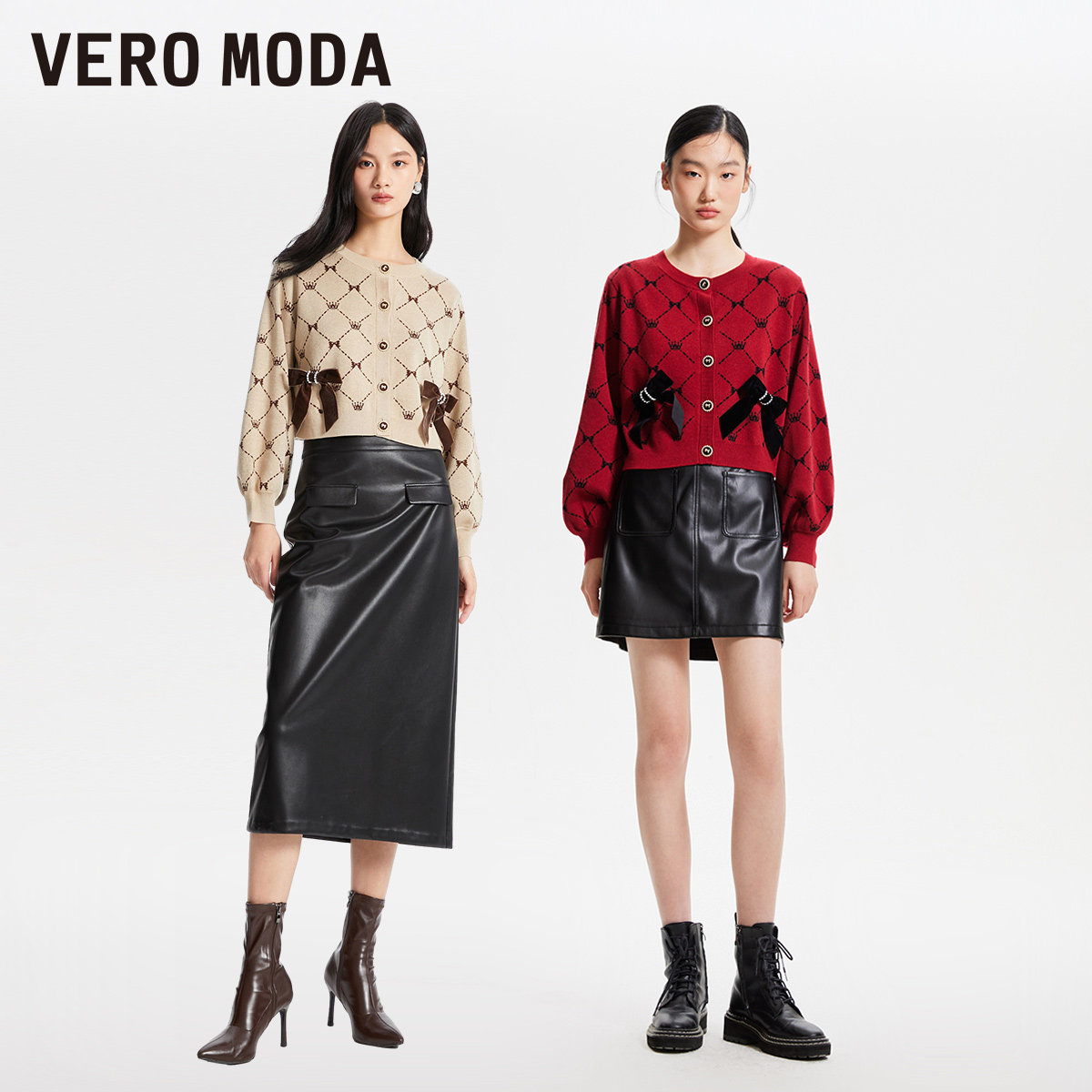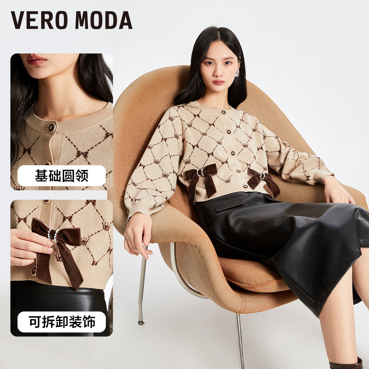 Vero Moda针织衫秋冬优雅蝴蝶结装饰开衫甜美减龄324413068