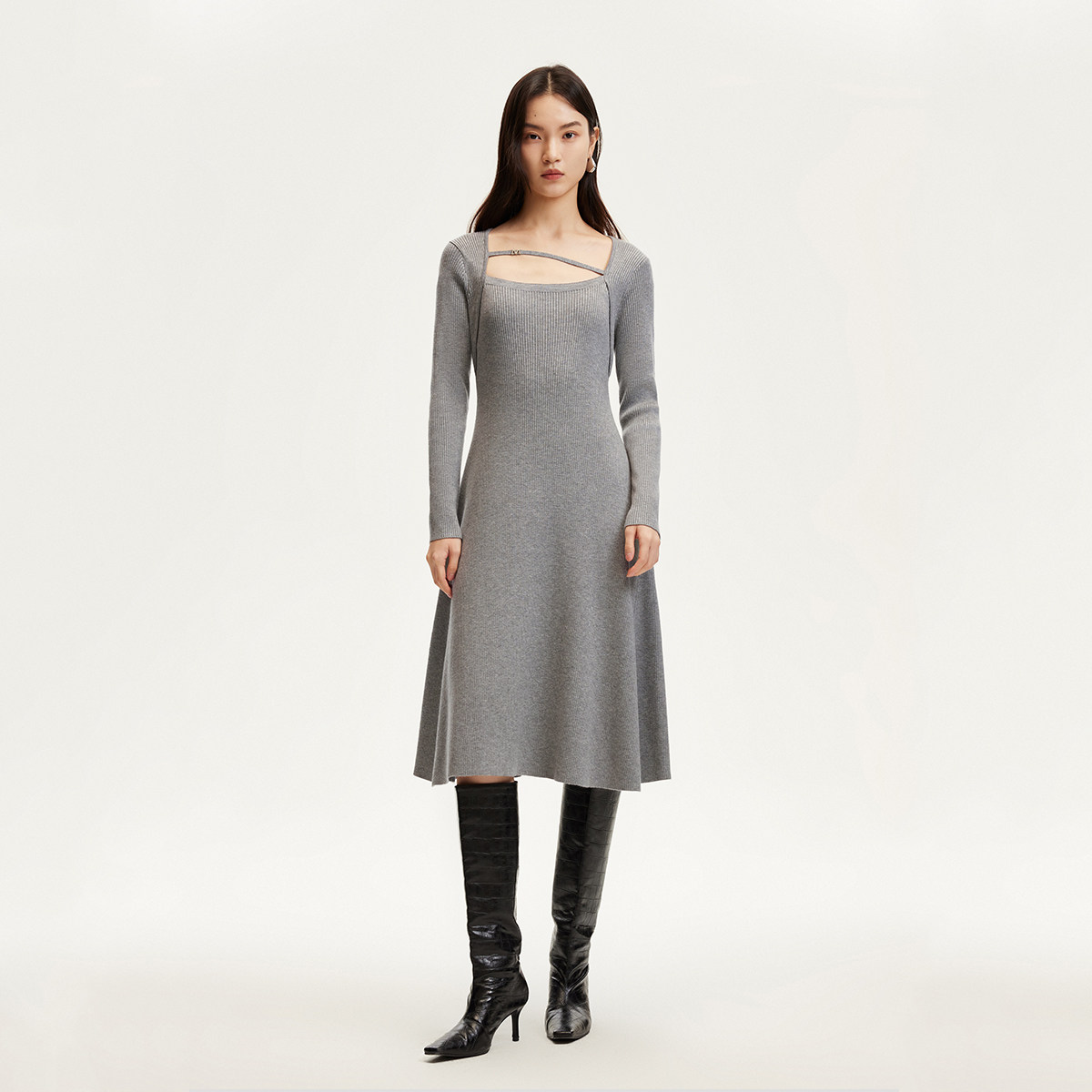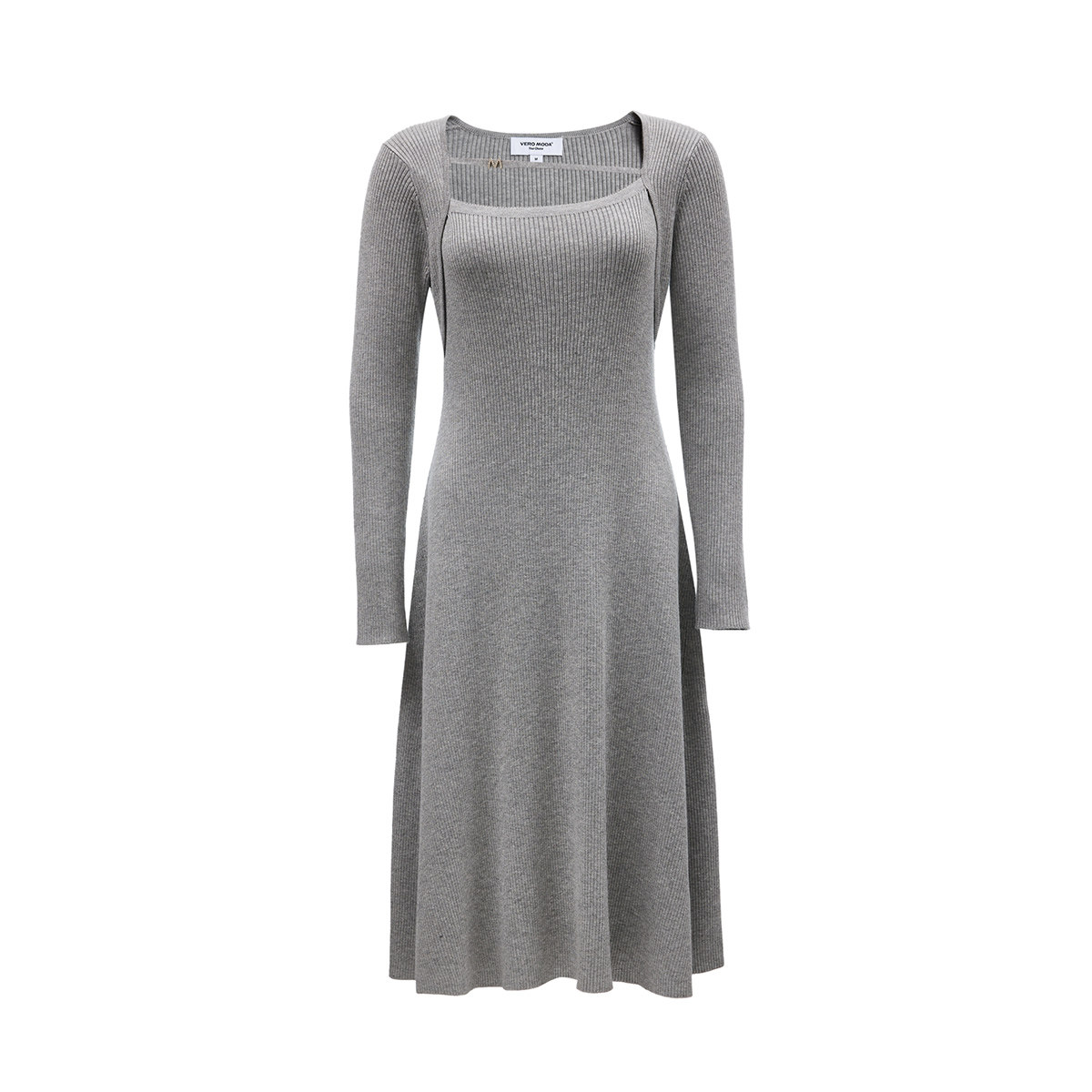 Vero Moda连衣裙女秋冬金属字母装饰竖坑条拼接324346036