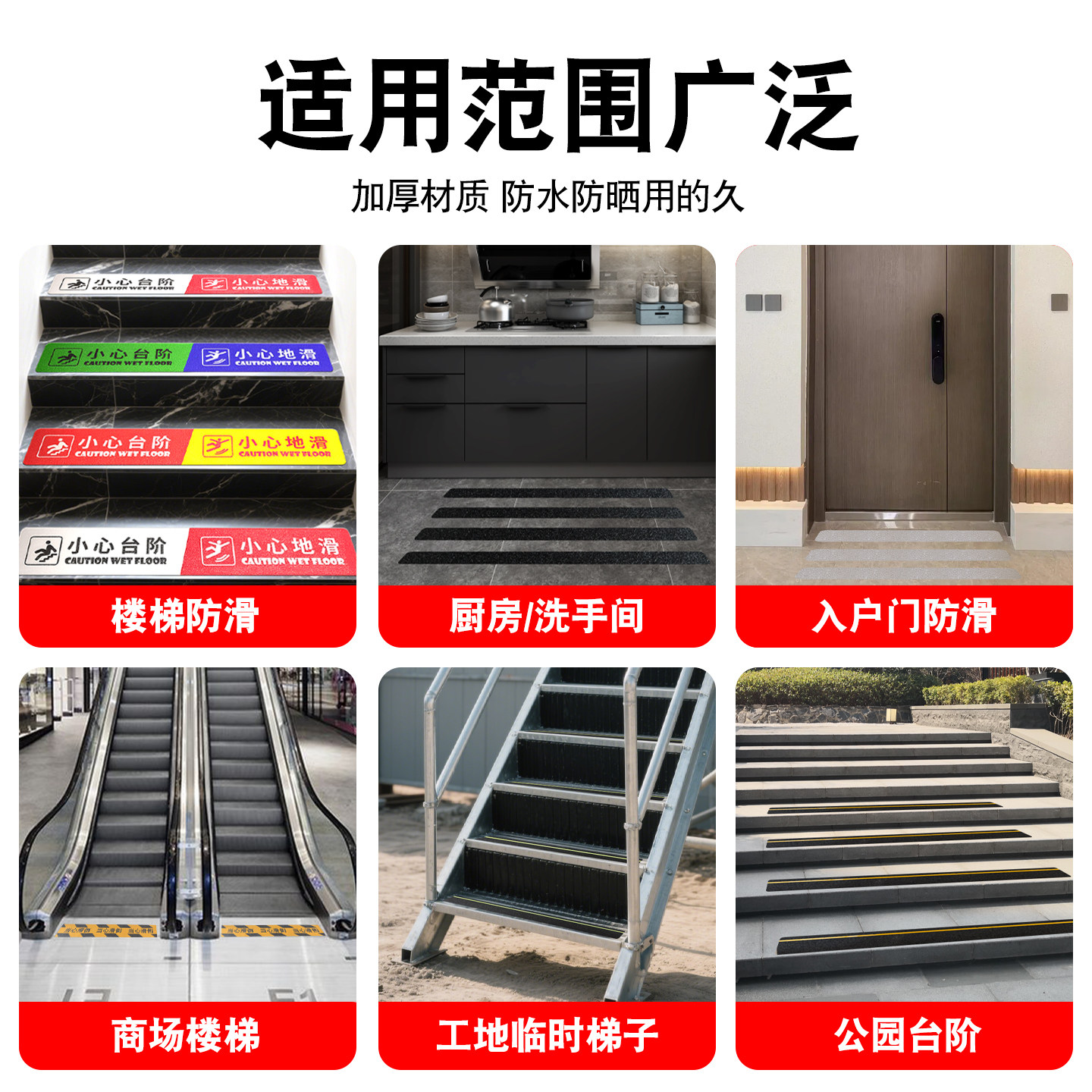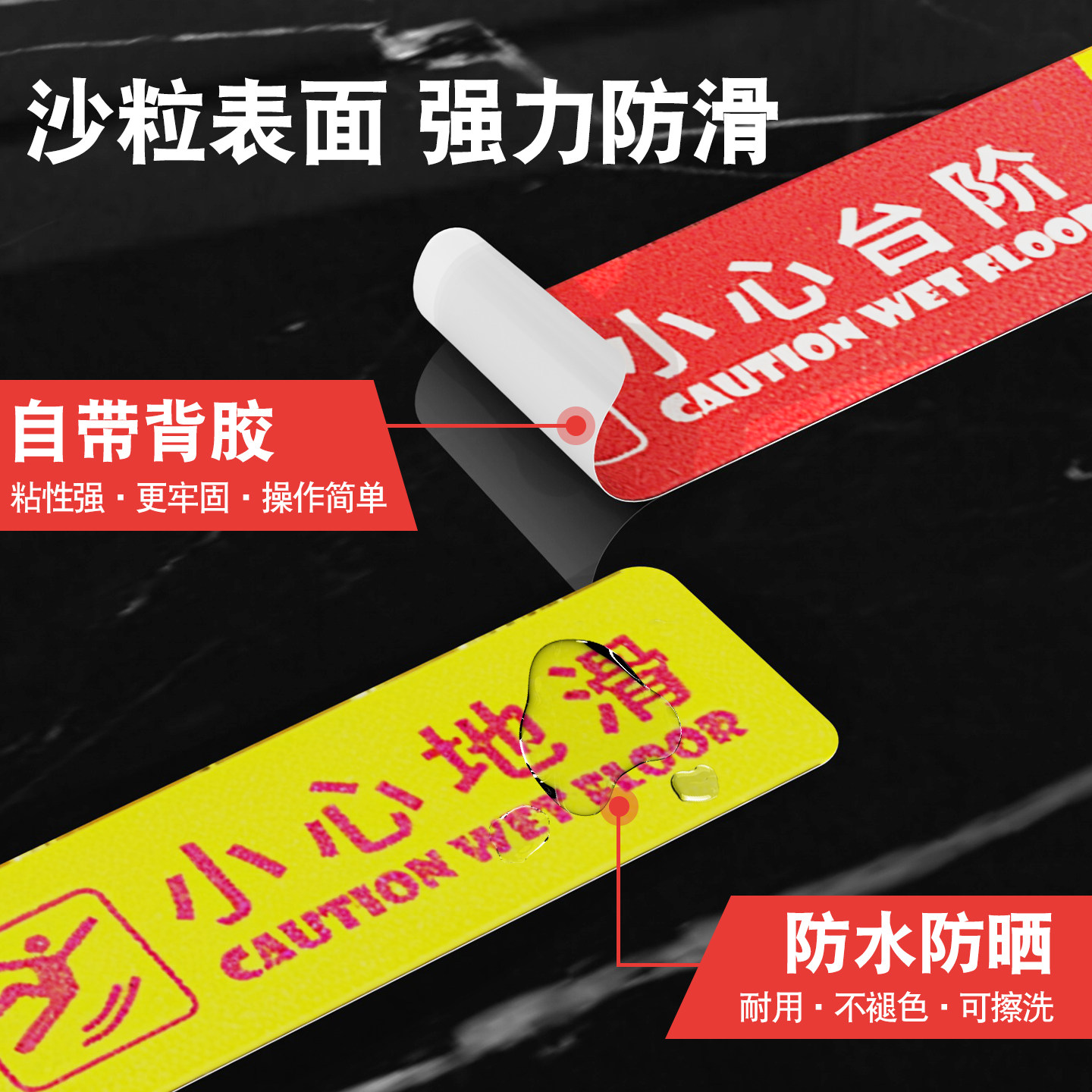 PVC小心台阶地滑磨砂防滑自粘地贴防水防滑楼梯台阶斜坡小心滑倒温馨提醒贴彩色防水地板安全警示标语标识贴