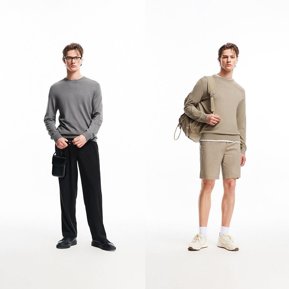 杰克琼斯秋季新款潮舒适简约圆领领型简约直筒长袖针织衫毛衣男装