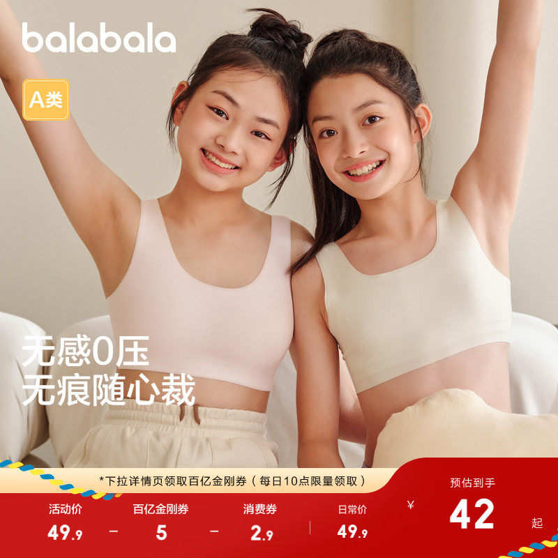 巴拉巴拉女童内衣发育期少女文胸儿童胸衣背心无痕防凸点走光学生