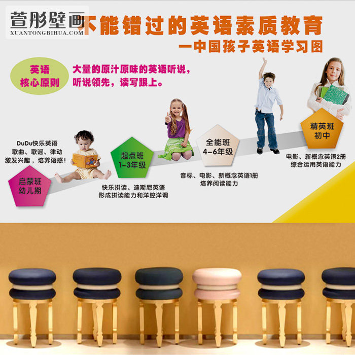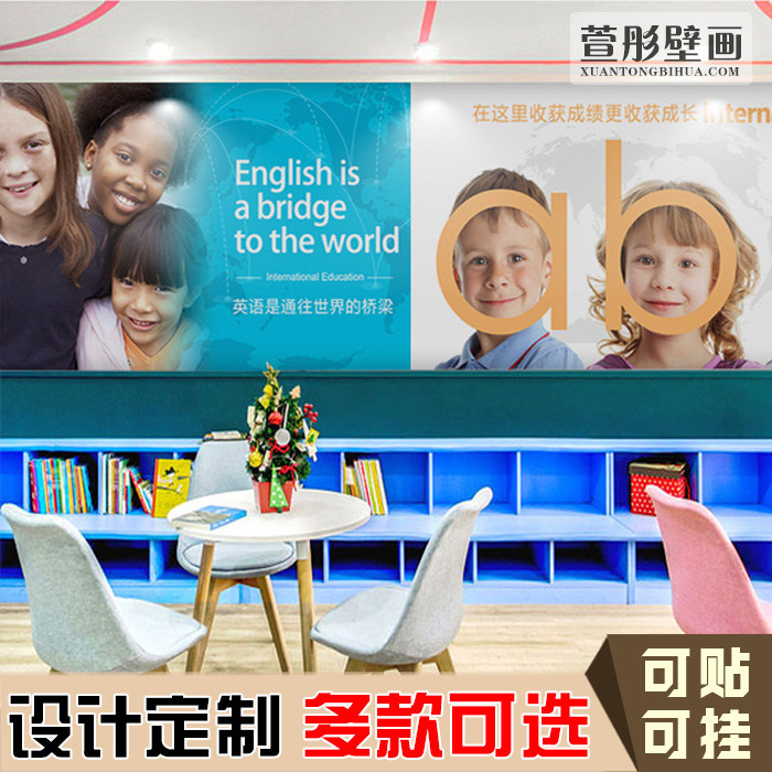 英语教室培训班墙布教育机构直播装饰背景布墙纸壁布壁画大型贴画