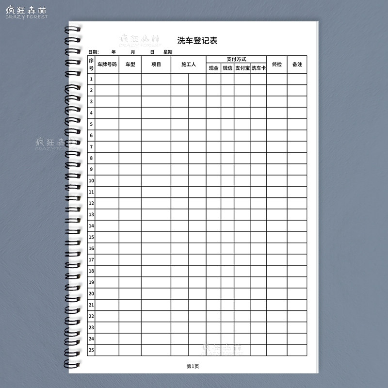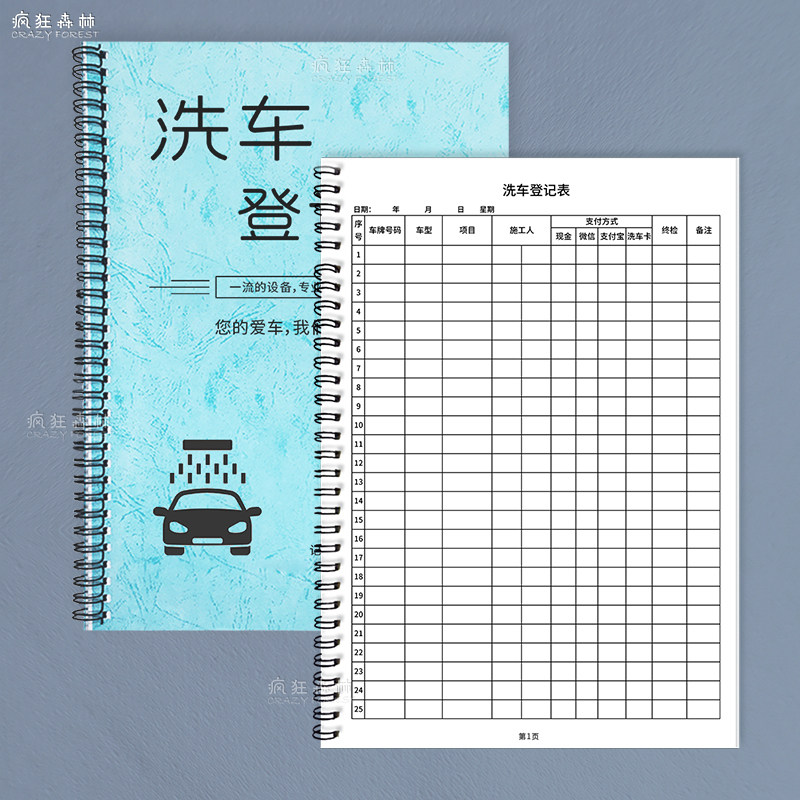 洗车登记本洗车店营业销售登记本汽车修理厂记账本洗车每日营业记录汽车美容常规检查美容服务单员工业绩登记