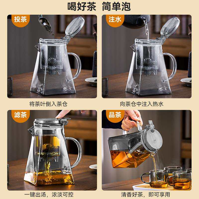 泡茶壶2025新款茶水分离家用耐热玻璃办公室飘逸杯茶具套装