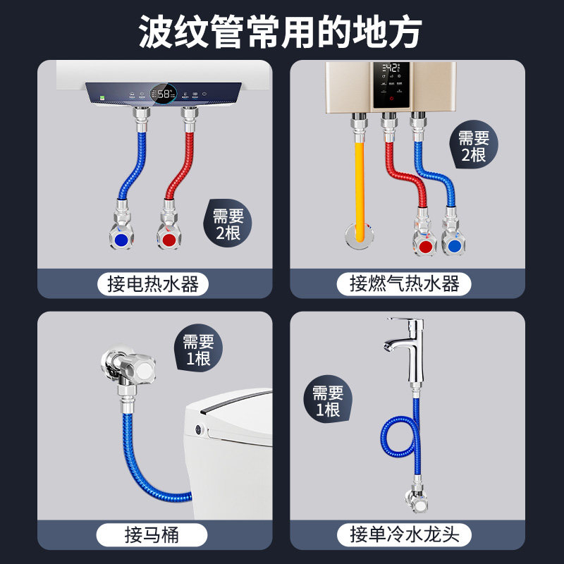 304不锈钢波纹管热水器进水管4分水管软管金属防爆冷热家用热水管