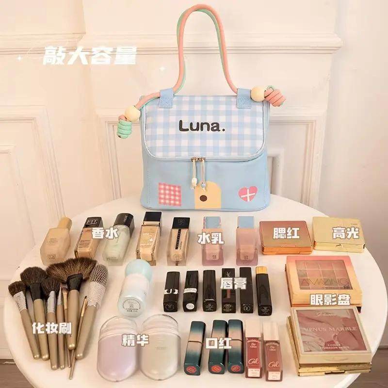 可爱芝士化妆包大容量分区外出手提便携护肤品防水收纳袋洗漱精致