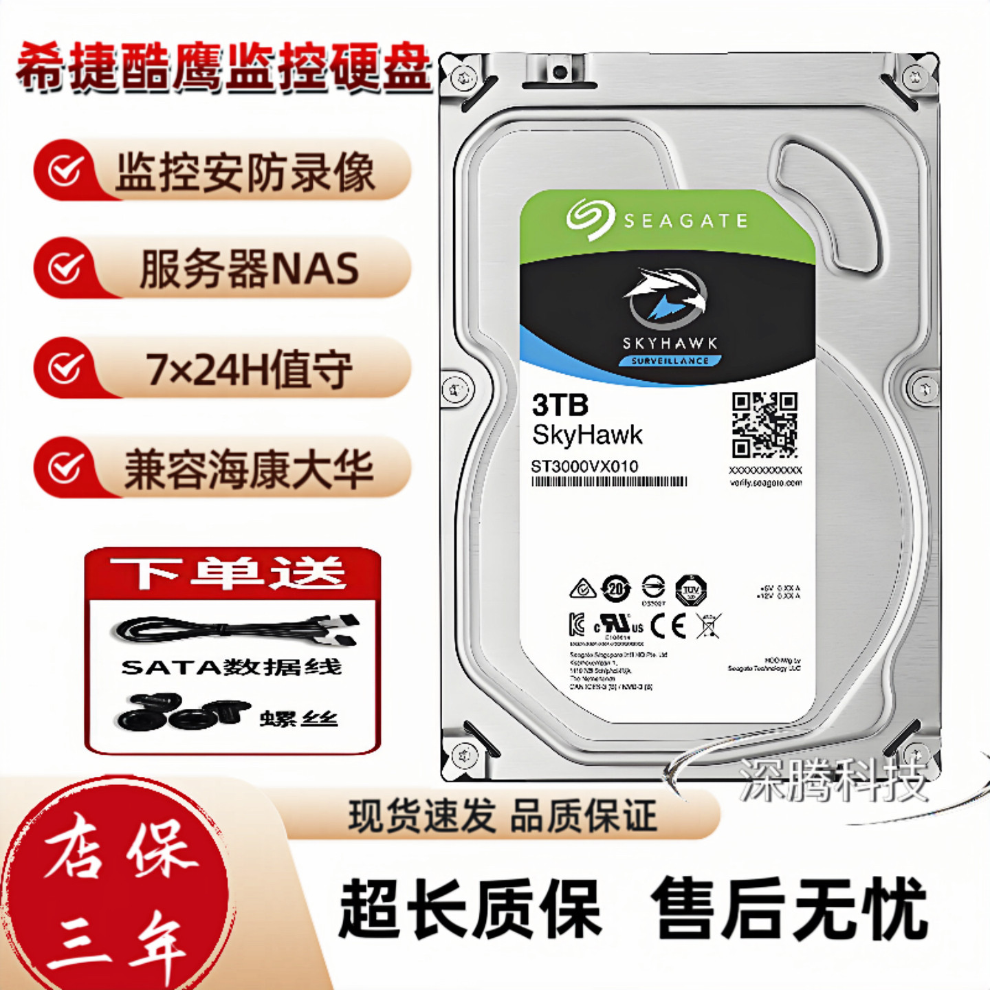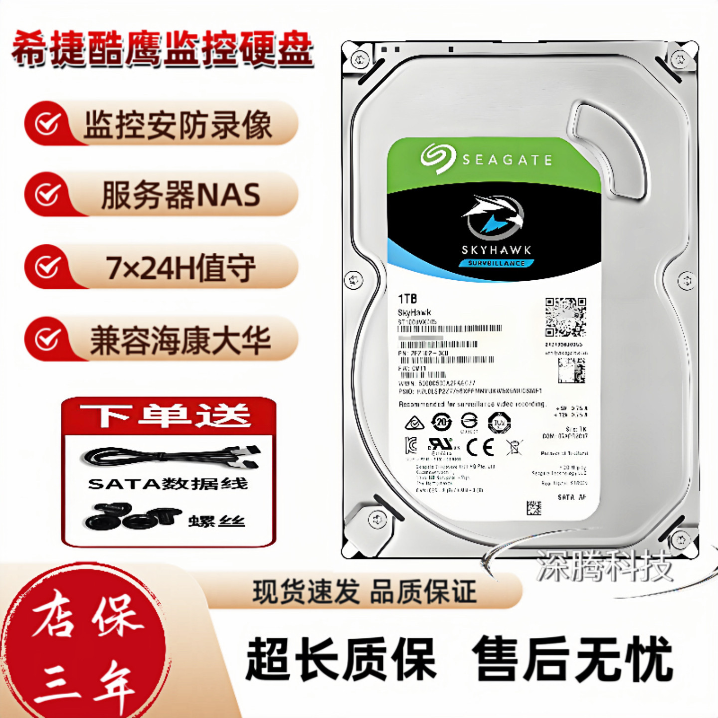 希捷1T监控硬盘3T6T8TB录像机械硬盘4T2T安防刻录NAS海康大华硬盘