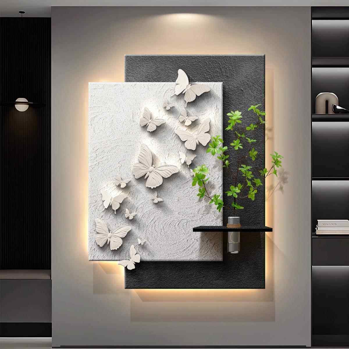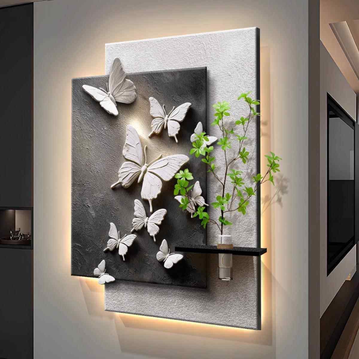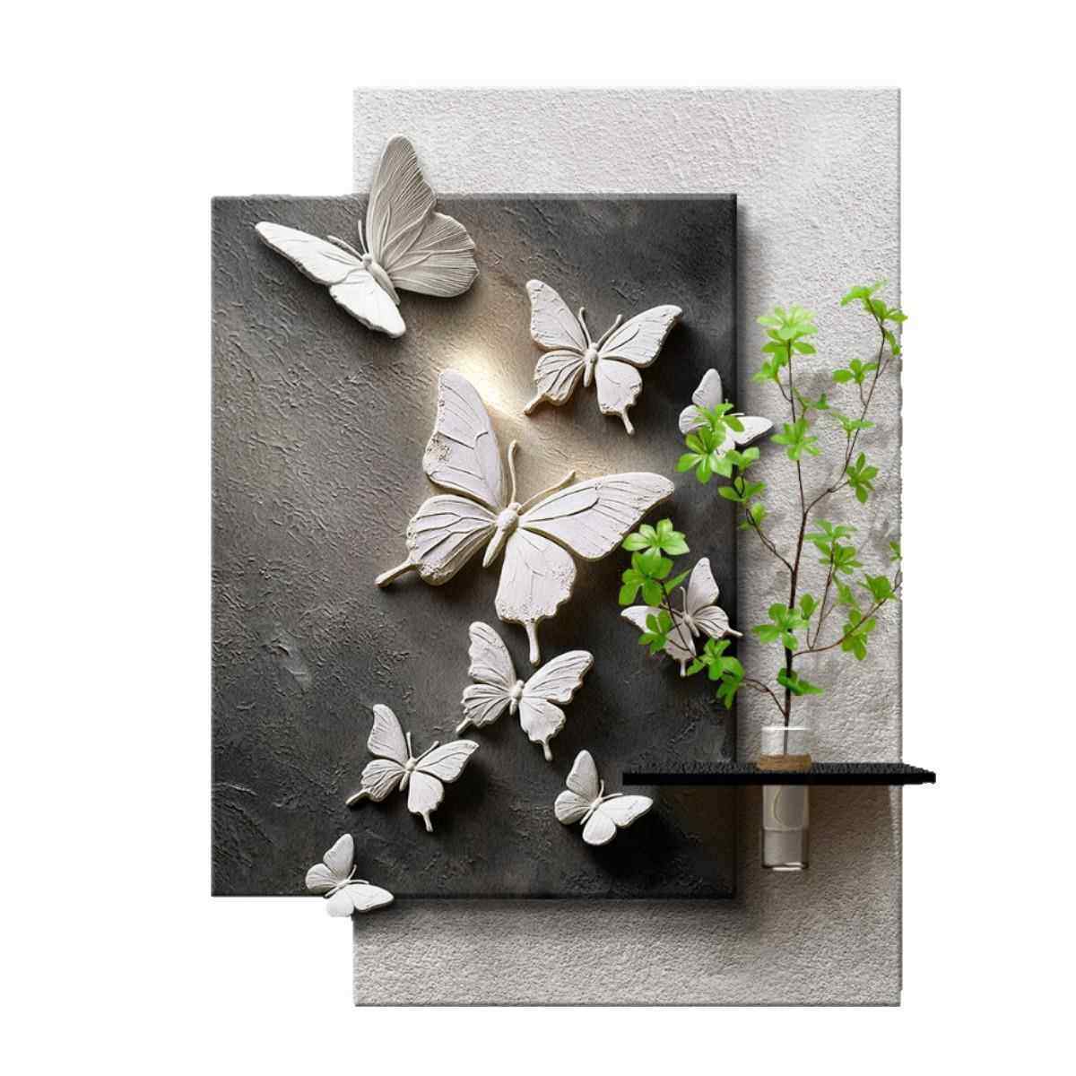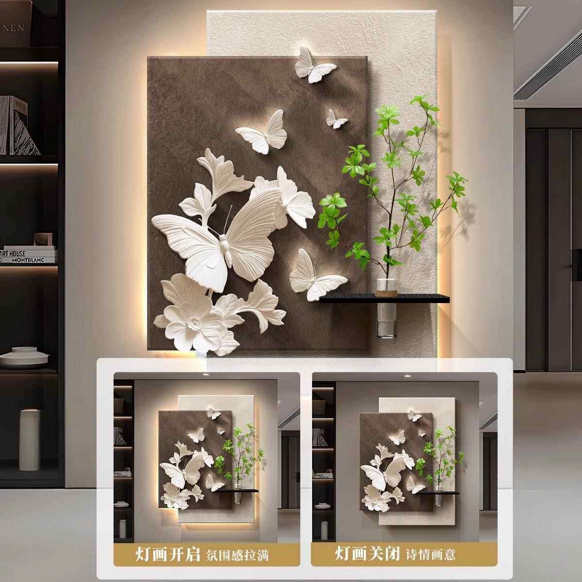 现代简约玄关装饰画水培绿植高级感抽象挂画入户走廊过道蝴蝶壁画