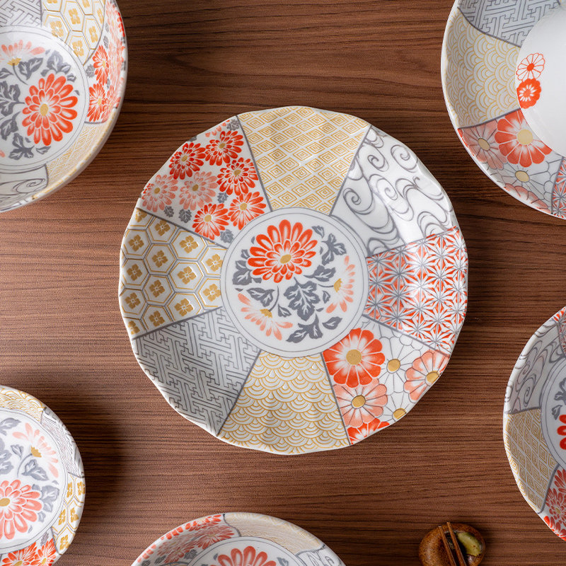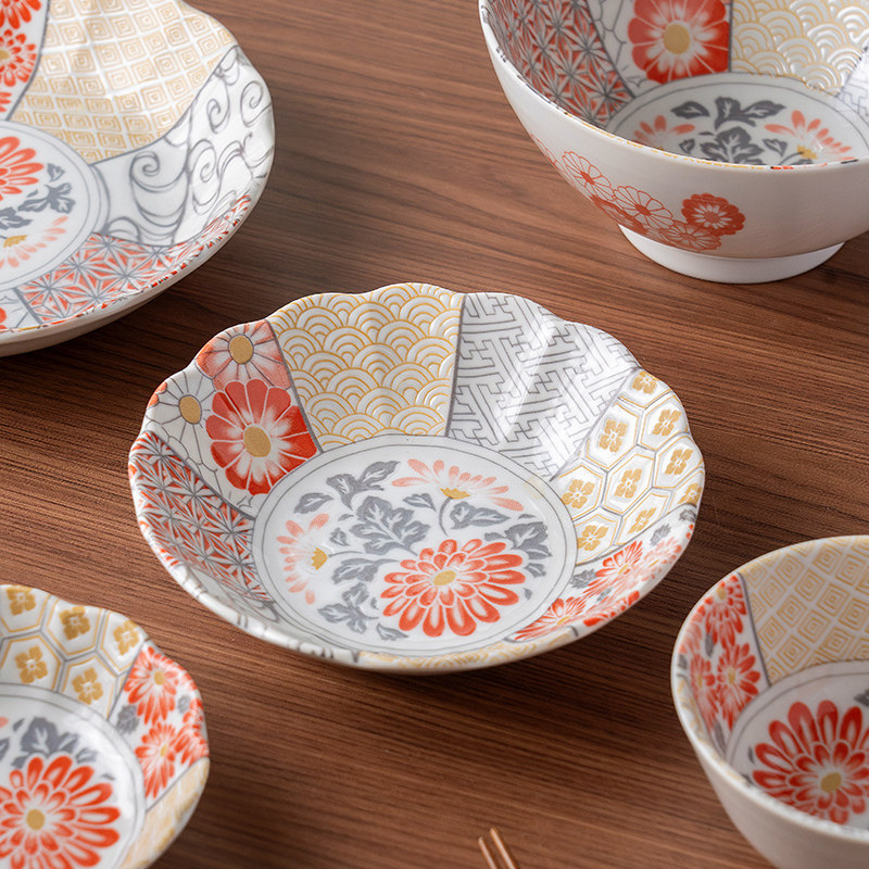 美浓烧祥瑞4.5英寸米饭碗盘子日式餐具精致漂亮大面碗深盘单个装