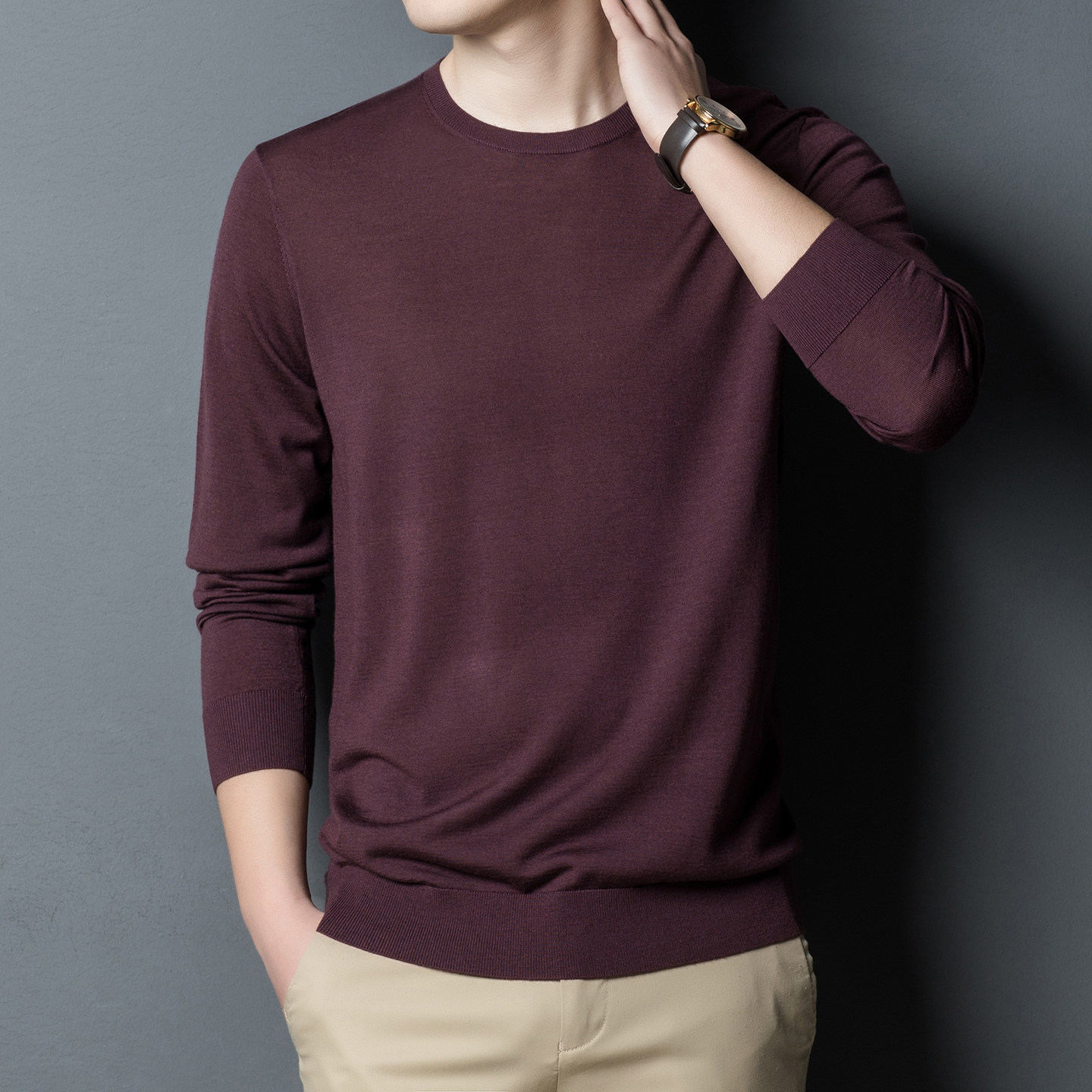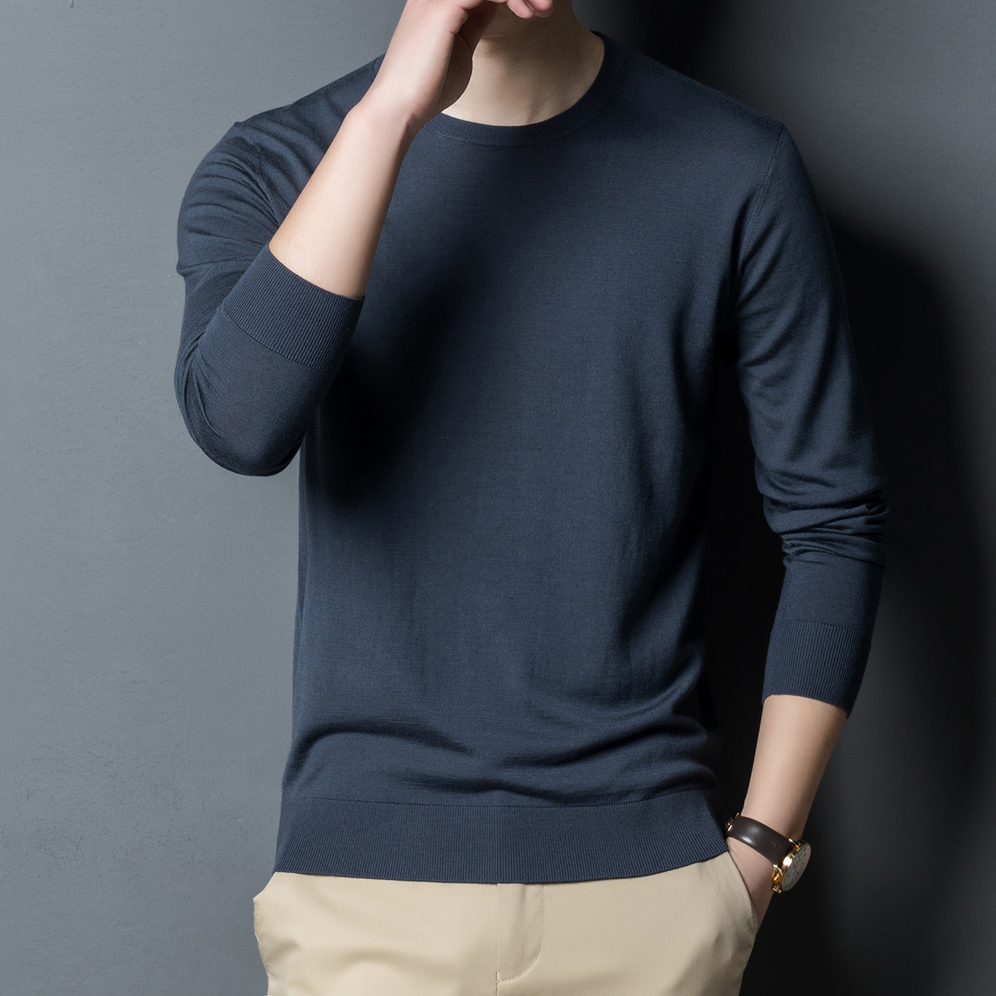 100支精纺美丽诺纯羊毛衫男圆领长袖秋冬软糯贴身不扎打底针织毛T