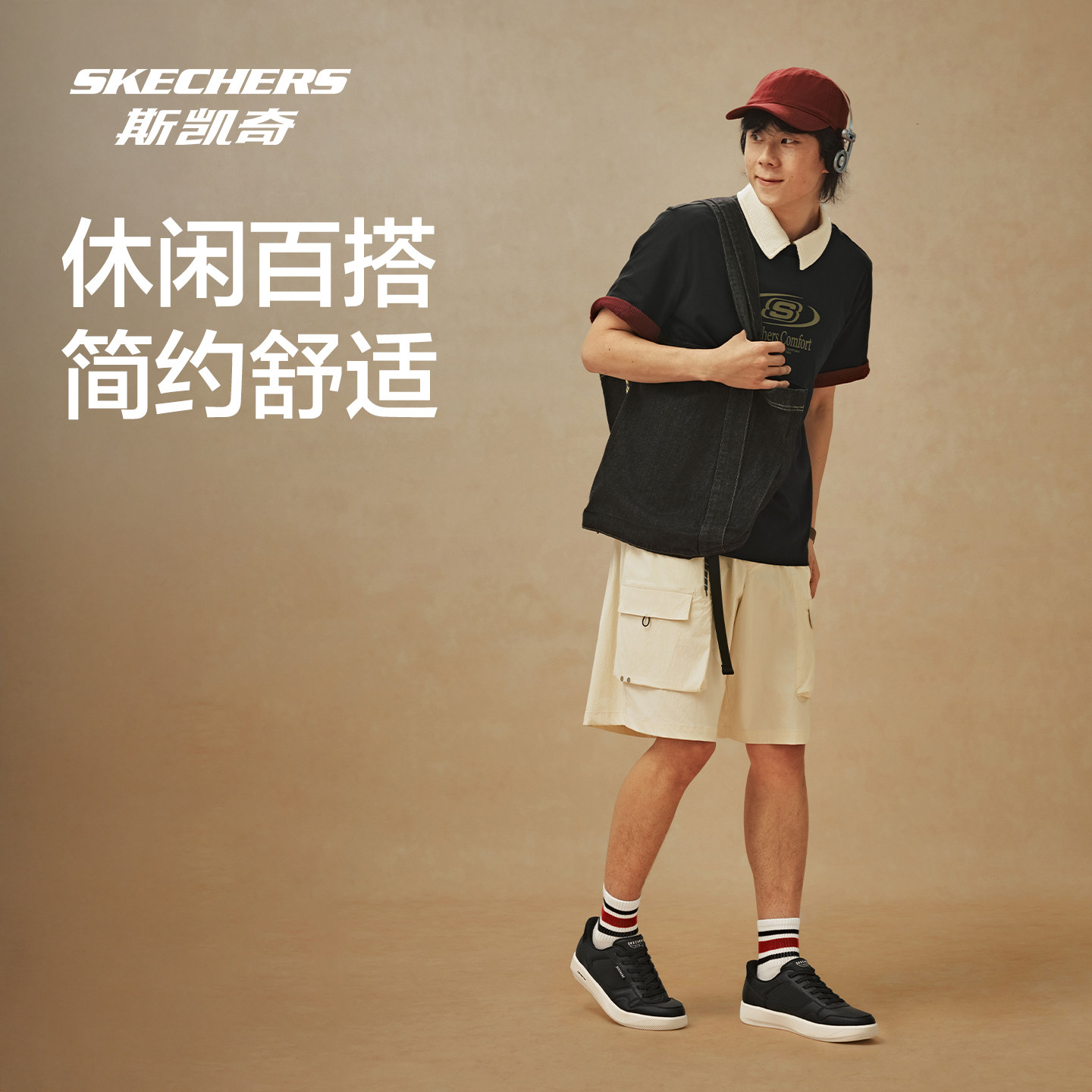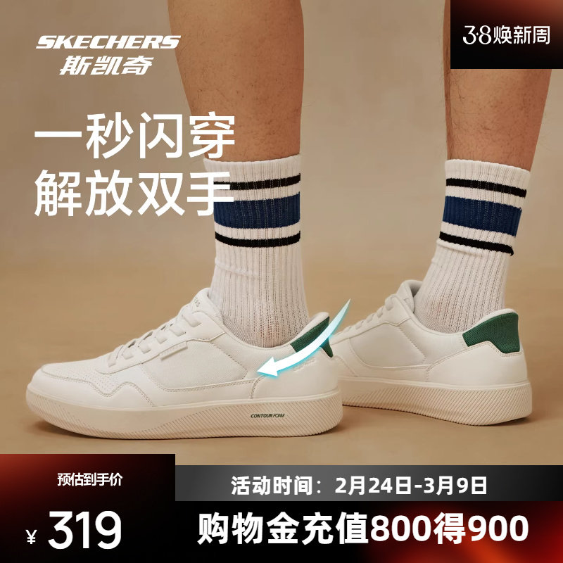 斯凯奇闪穿鞋板鞋一脚蹬男鞋新款小白鞋黑休闲运动鞋防滑耐磨潮流
