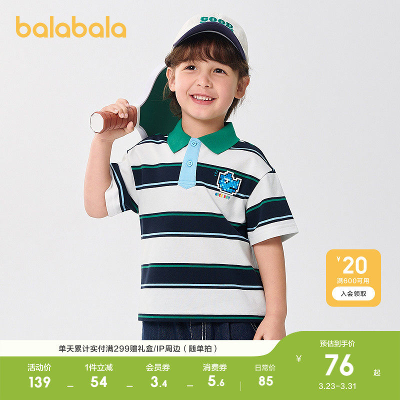 巴拉巴拉儿童短袖t恤条纹POLO衫男童装轻薄夏装新款休闲百搭上衣