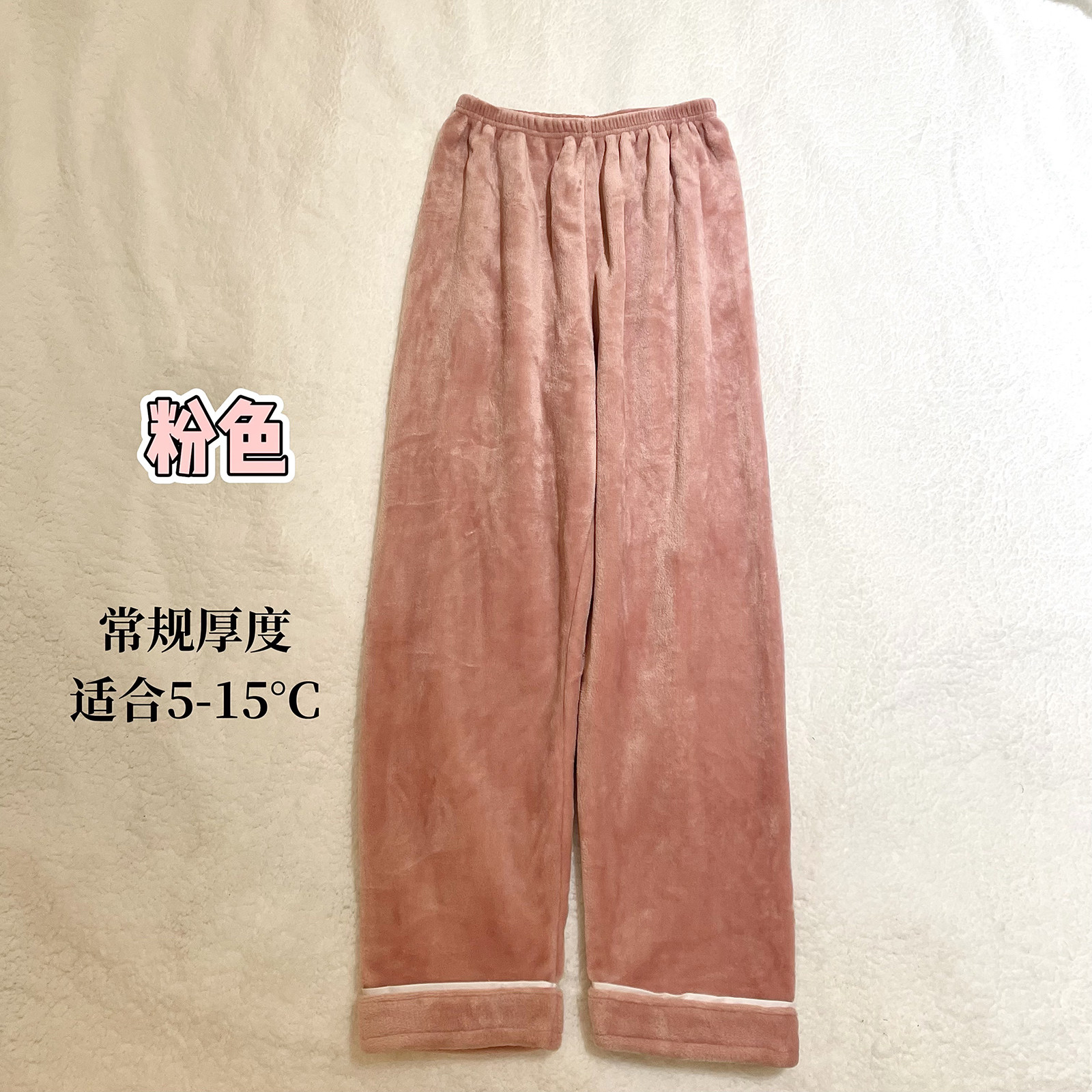 家居睡裤法兰绒加绒加厚秋冬保暖柔软男女情侣直筒可外穿纯色长裤