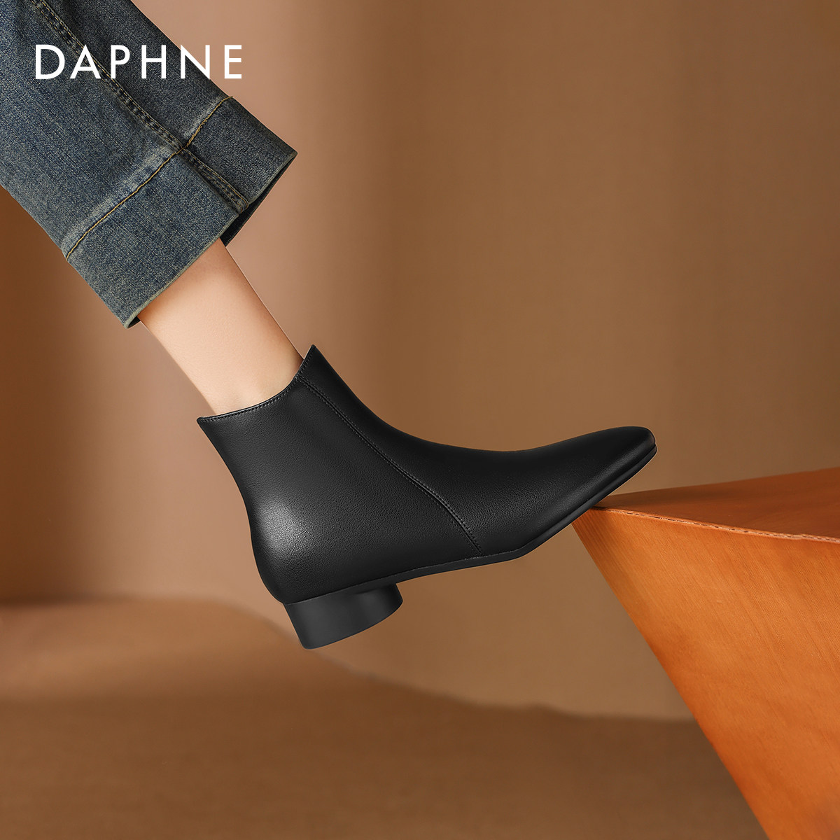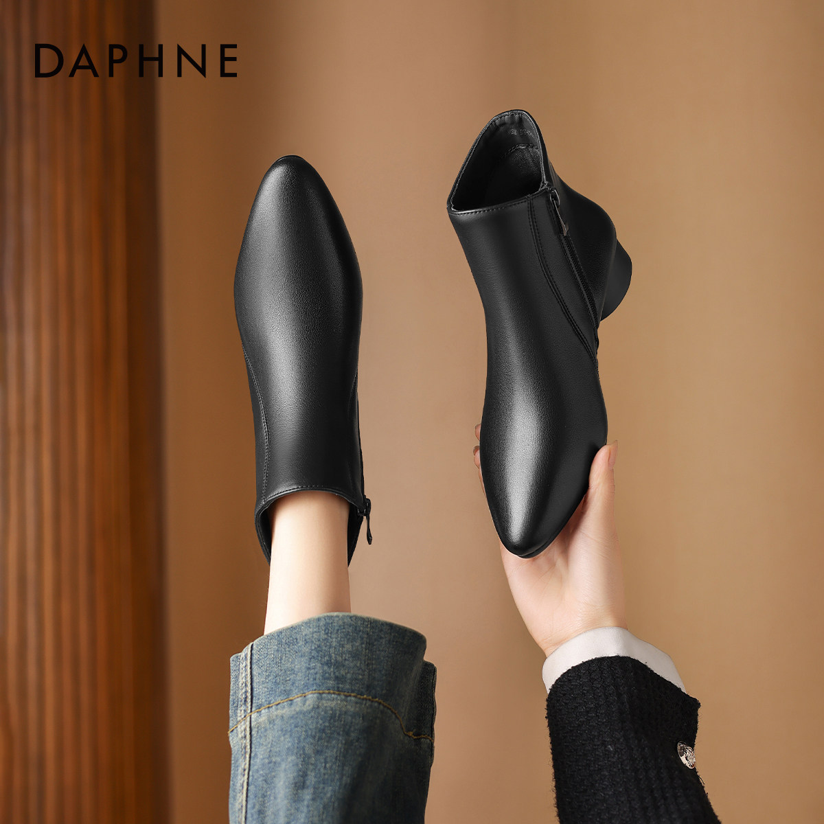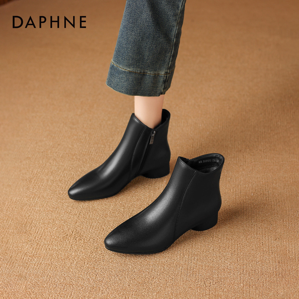 达芙妮尖头短靴女春季2026新款女士妈妈靴子秋冬粗跟马丁靴皮鞋子
