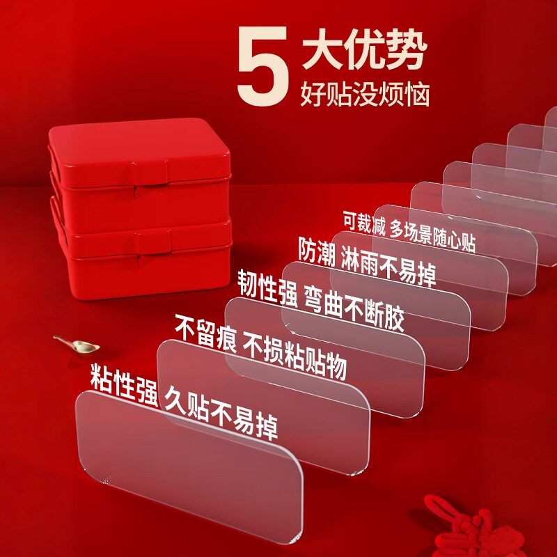 六品堂贴对联无痕胶双面胶不留痕强力贴春联神器专用胶贴片胶纳米防水胶婚车婚房多功能多用途万能强力贴片