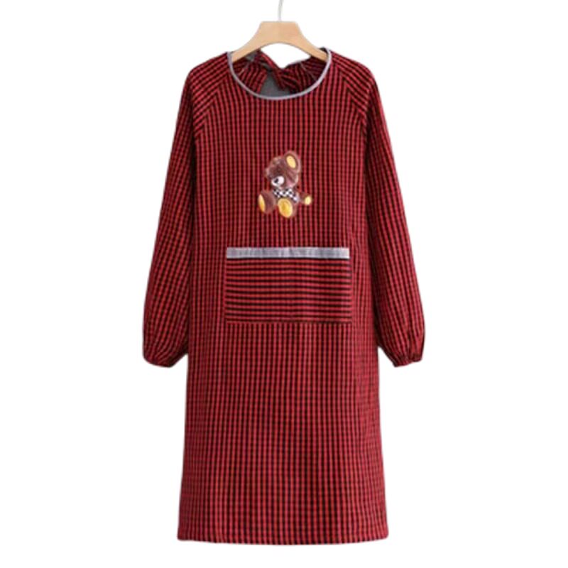 新款棉布耐磨围裙长袖厨房家用防污罩衣透气围腰做饭上班工作服女
