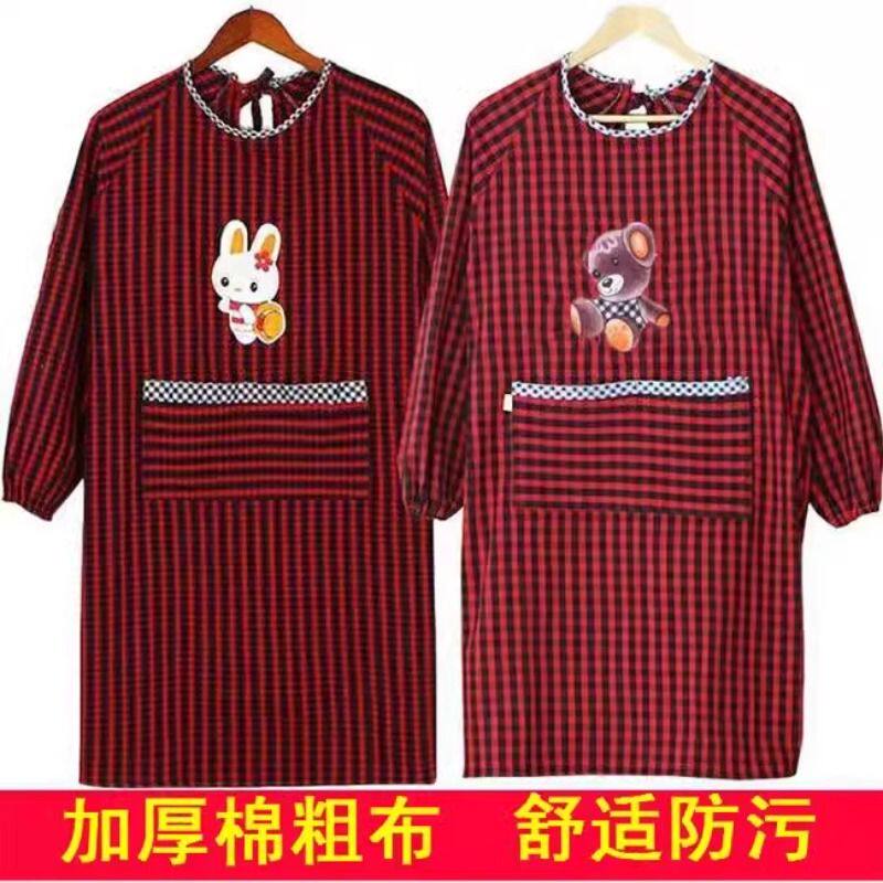 冬季加绒罩衣大人加厚长袖围裙防水韩版女时尚外套家用工作服定制