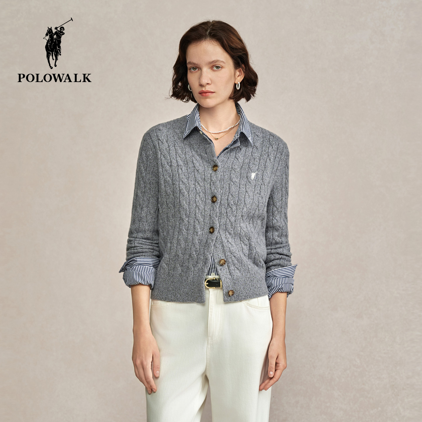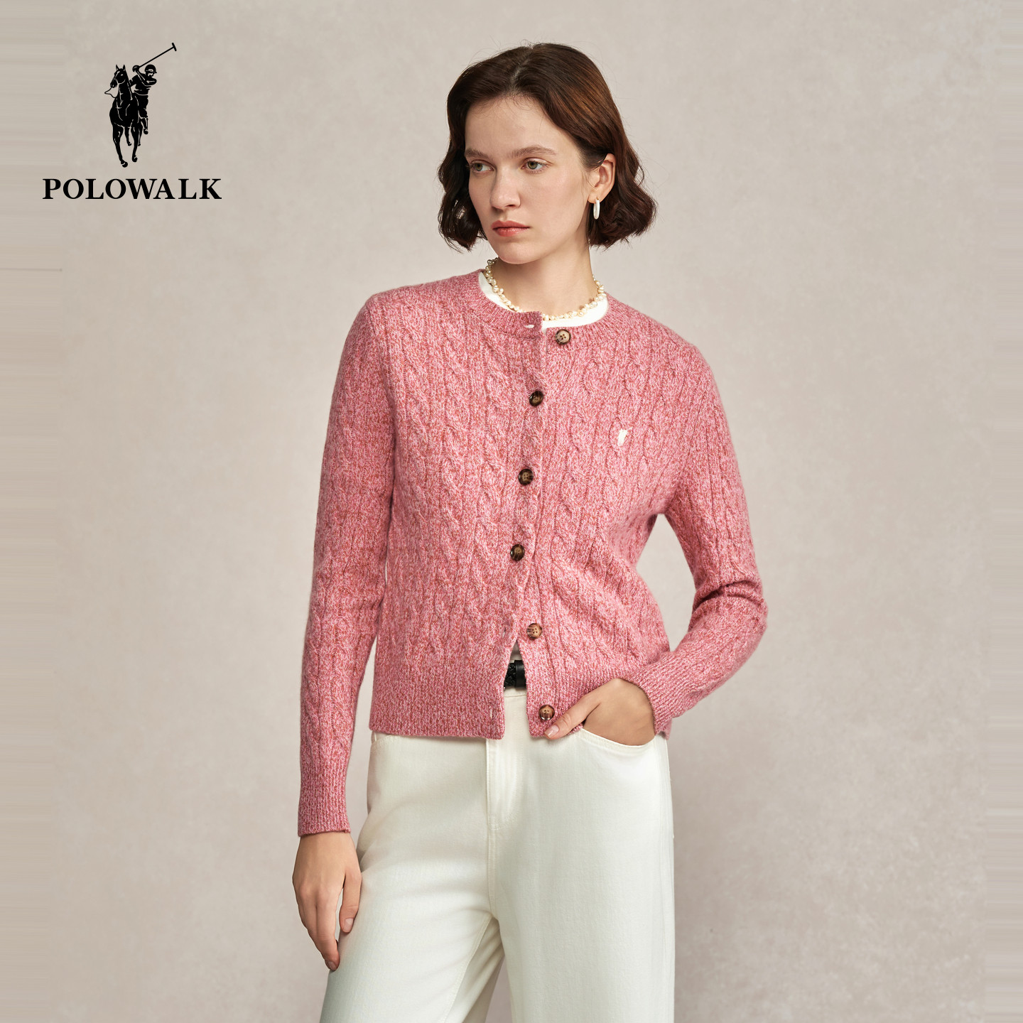 【100%绵羊毛】POLOWALK女式羊毛衫2025冬季新品新年红色绞花开衫