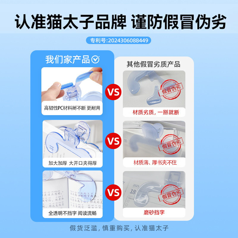 猫太子宝盖头书夹小学生专用黄金12度透明书签儿童书夹固定书本看书读书阅读支架压书神器厚书夹子文具防翻页