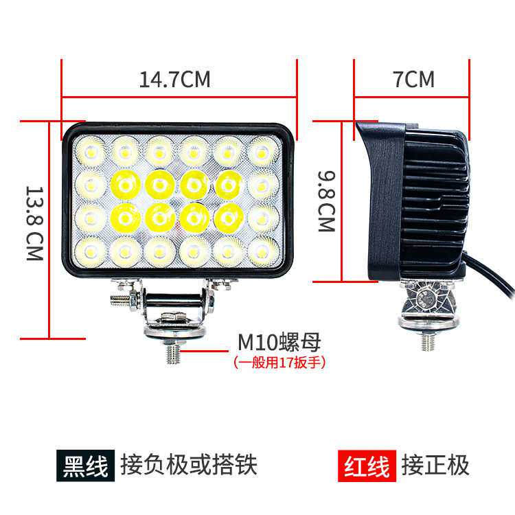 厚铝壳可超长时间作业挖机LED大臂灯24珠高亮装载机铲车抗震大灯