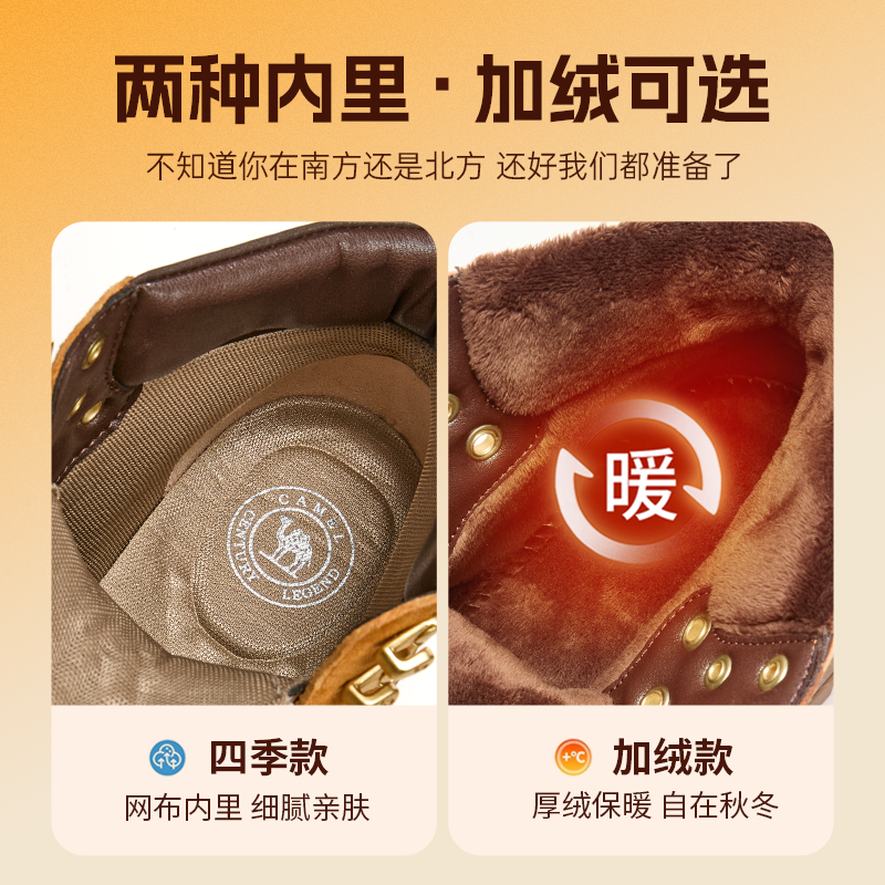 骆驼马丁靴男鞋工装加绒加厚保暖户外男款休闲中高帮时装靴子秋冬