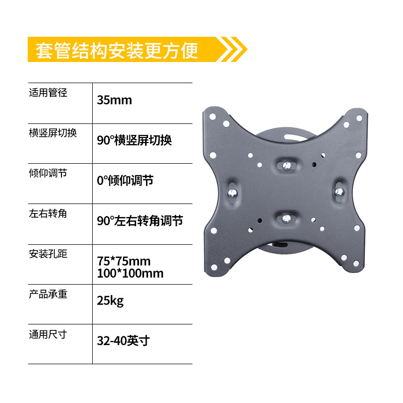 电视横竖屏旋转配件适用于管子35mm音箱三角架3P2-50寸安装头配件