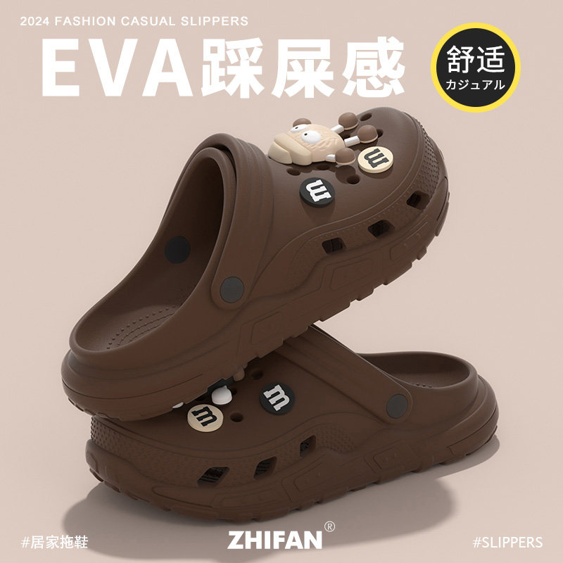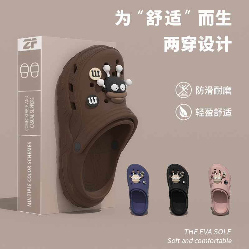 防滑煤球洞洞鞋男士2025夏季新款外穿EVA可爱舒适沙滩情侣拖鞋男