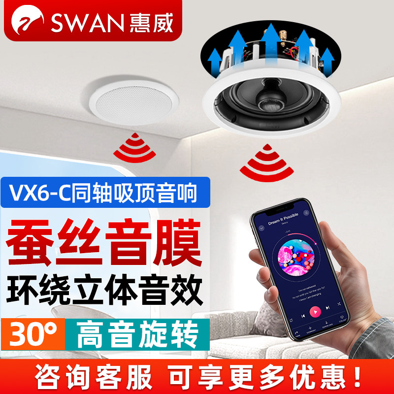 Hivi/惠威 VX6-C定阻吸顶喇叭功放吊顶音响套装家用音箱VX5/VX8