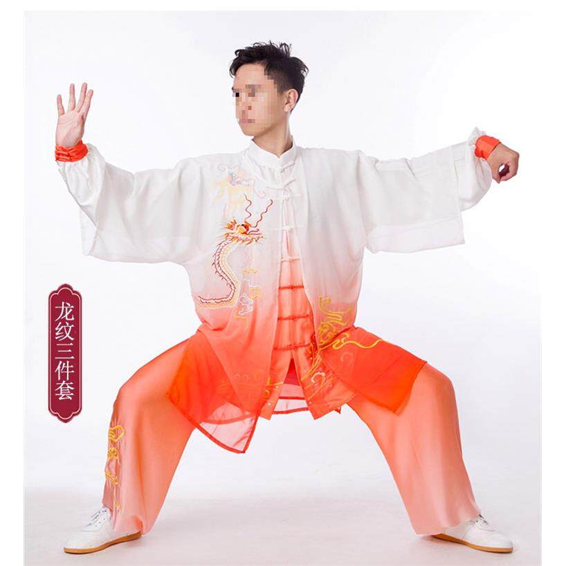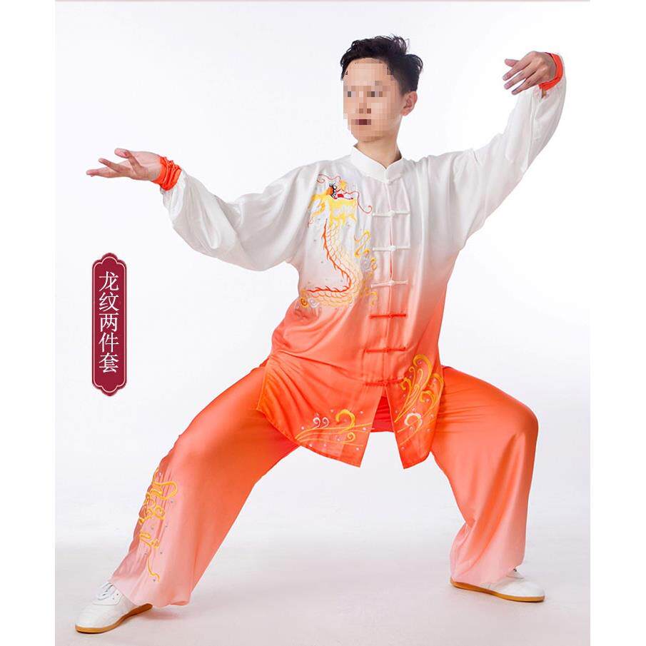 太极服女披纱渐变色龙凤刺绣表演比赛太极拳练功服装男