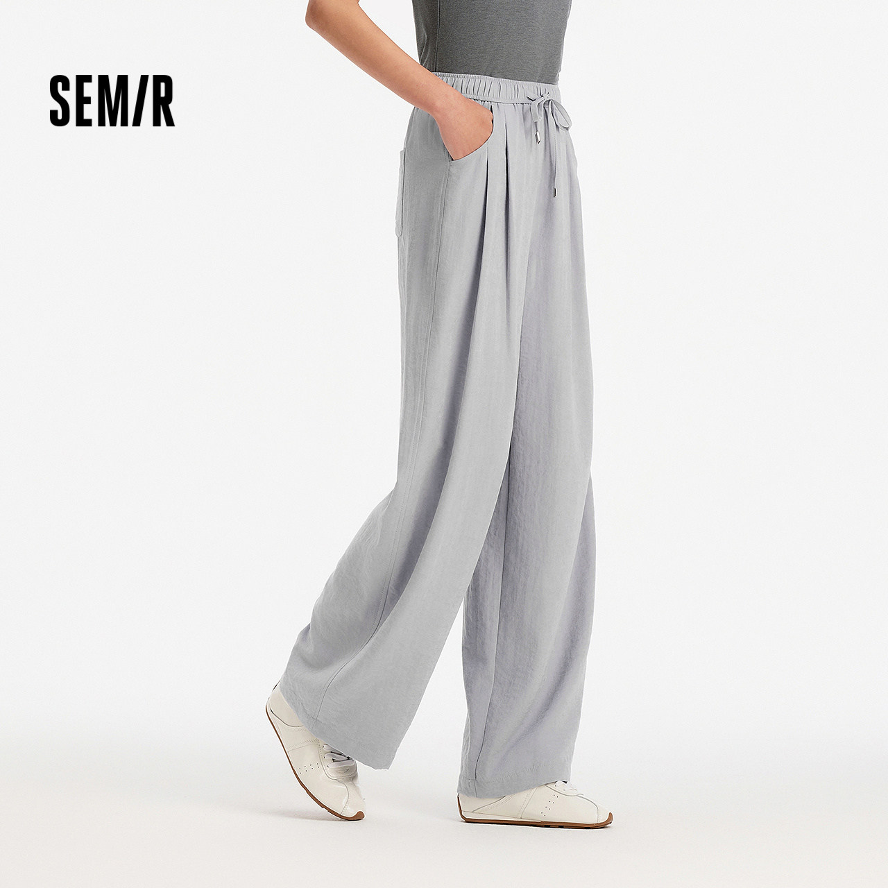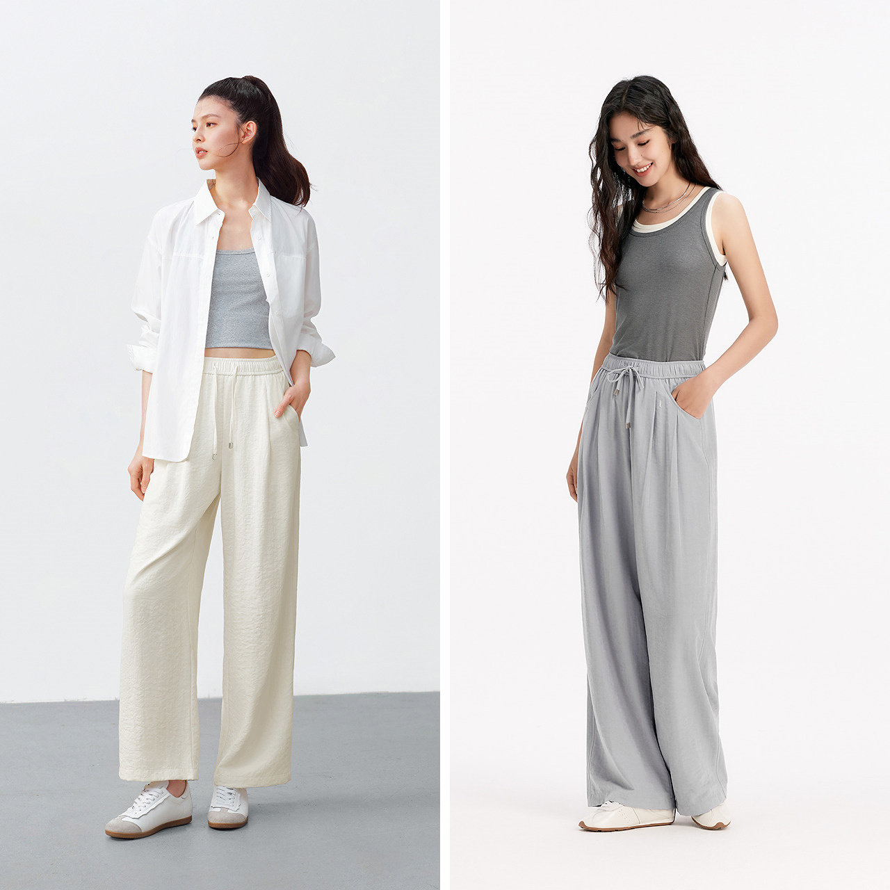 森马休闲裤女夏季打褶肌理阔腿长裤宽松松紧腰慵懒气质软糯奶芙裤