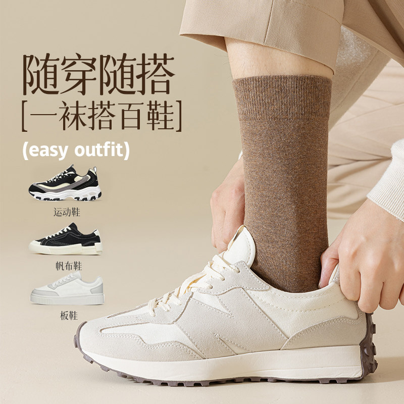 芬腾可安男士通勤商务中筒袜秋冬季男款防臭吸汗商务纯色袜子潮