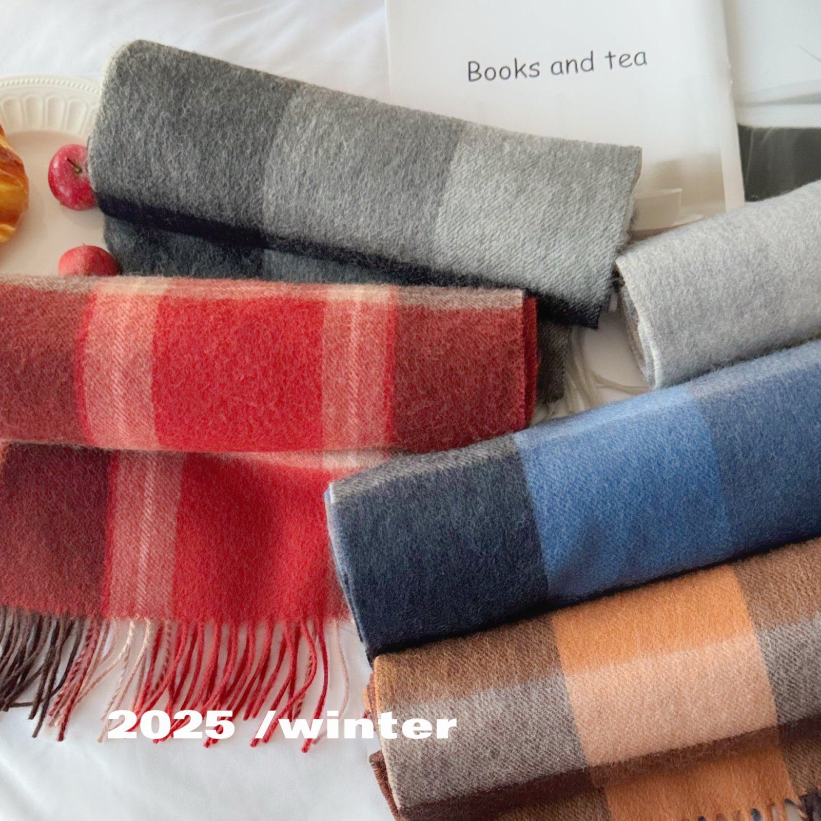 100%羊毛围巾圣诞红色秋冬季礼盒2025新款生日礼物男女格纹轻奢