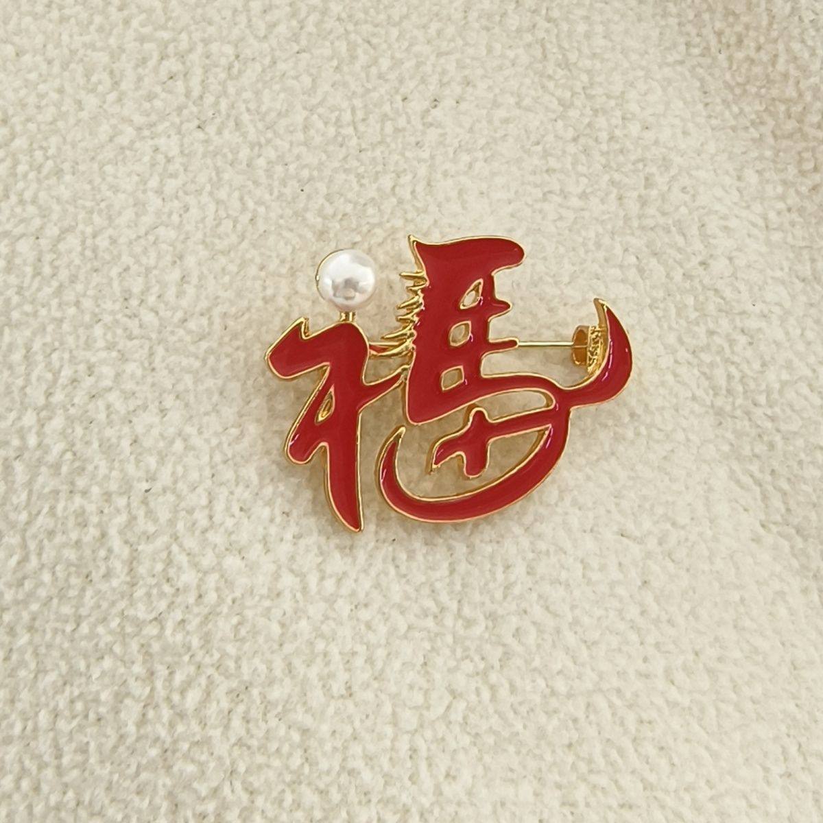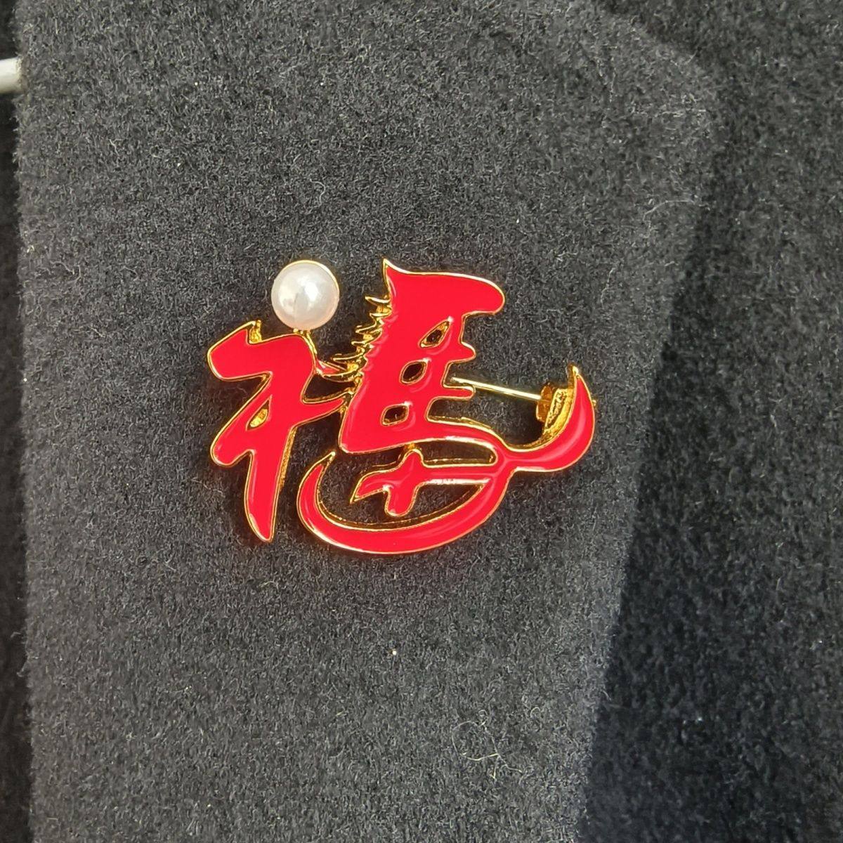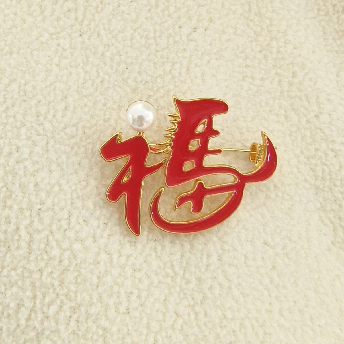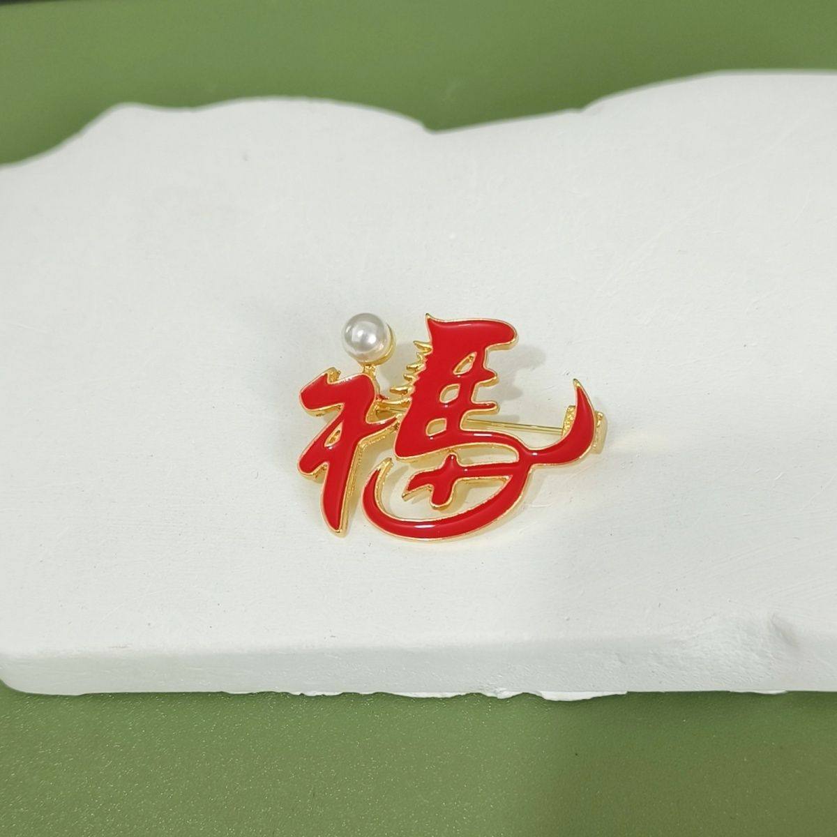 新款国风新年马福字胸针红色图案别针本命年高档配饰喜庆胸花西装