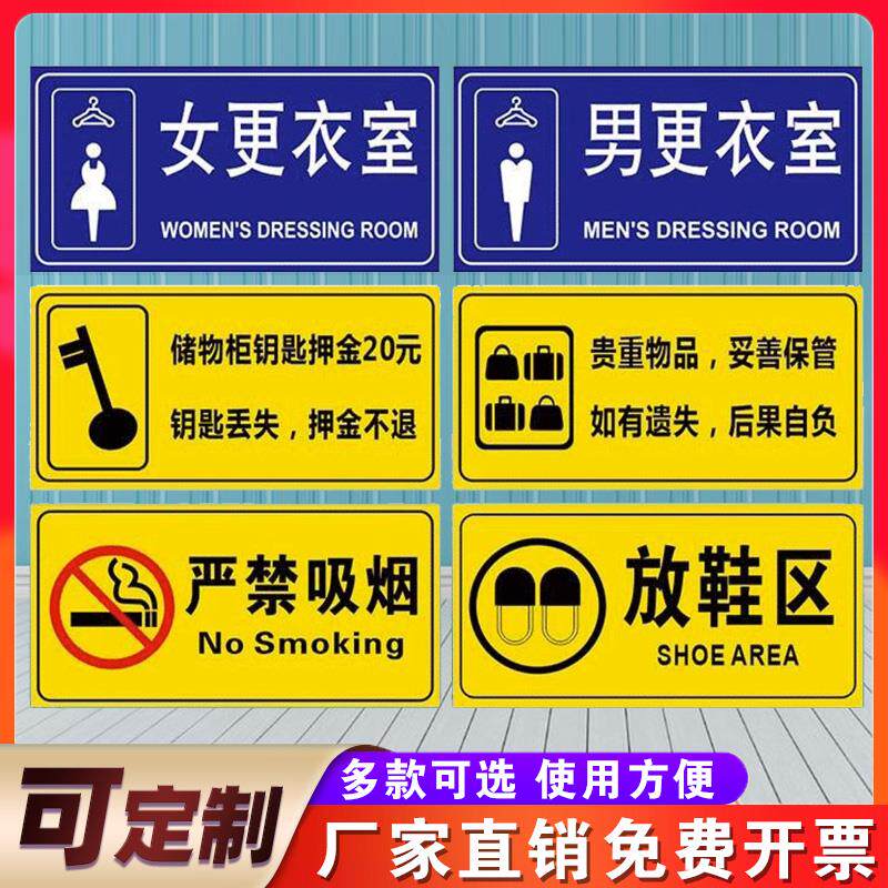 定制男女地区澡堂下水标识牌浴室前请健身房滑温馨游泳馆更衣室放鞋指示牌售票处小心提示牌淋浴标识牌浴室