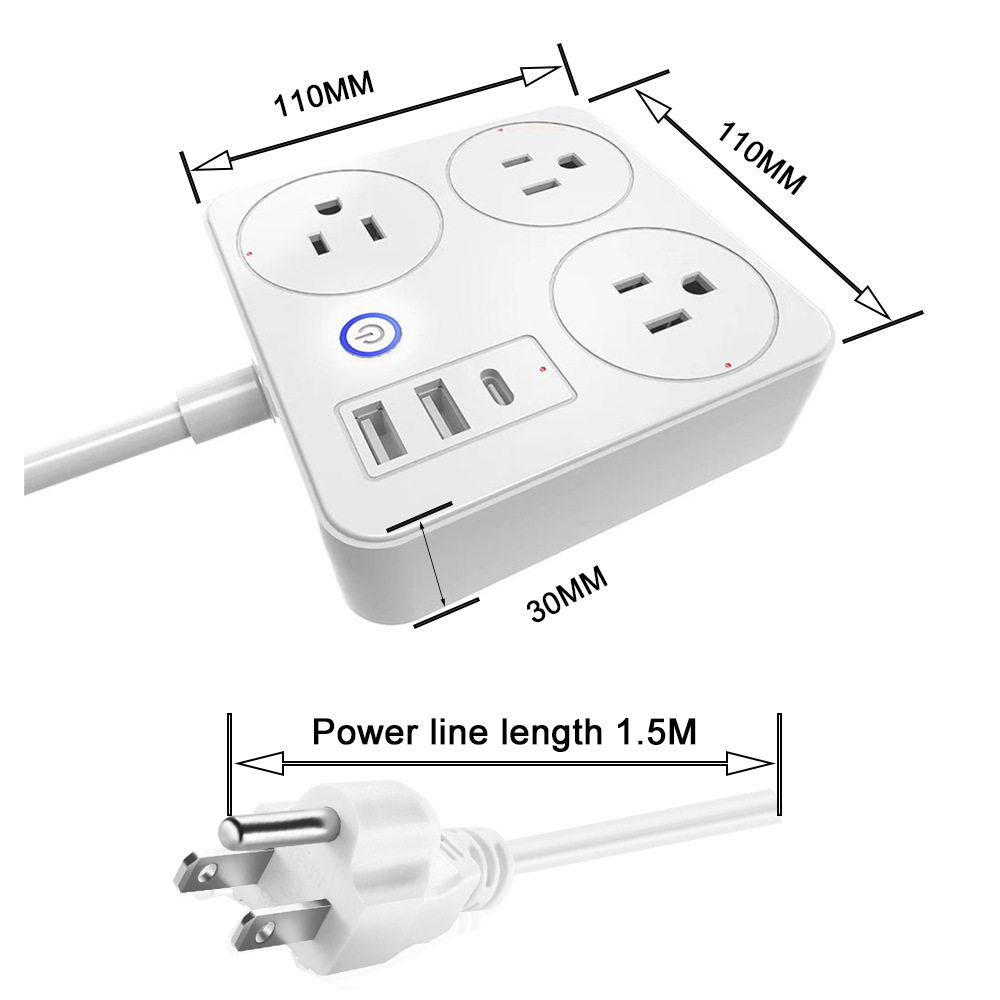 美规WiFi智能排插涂鸦双USBType-C跨境插座语音家用