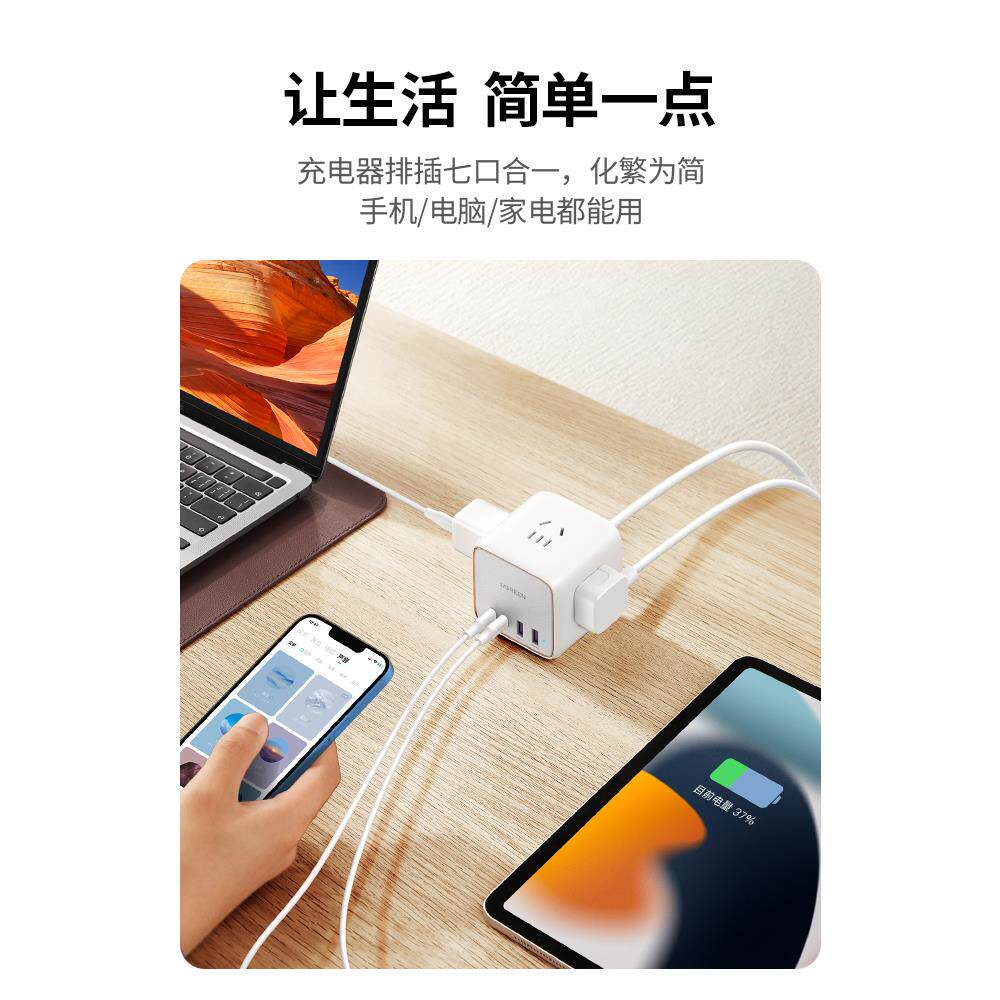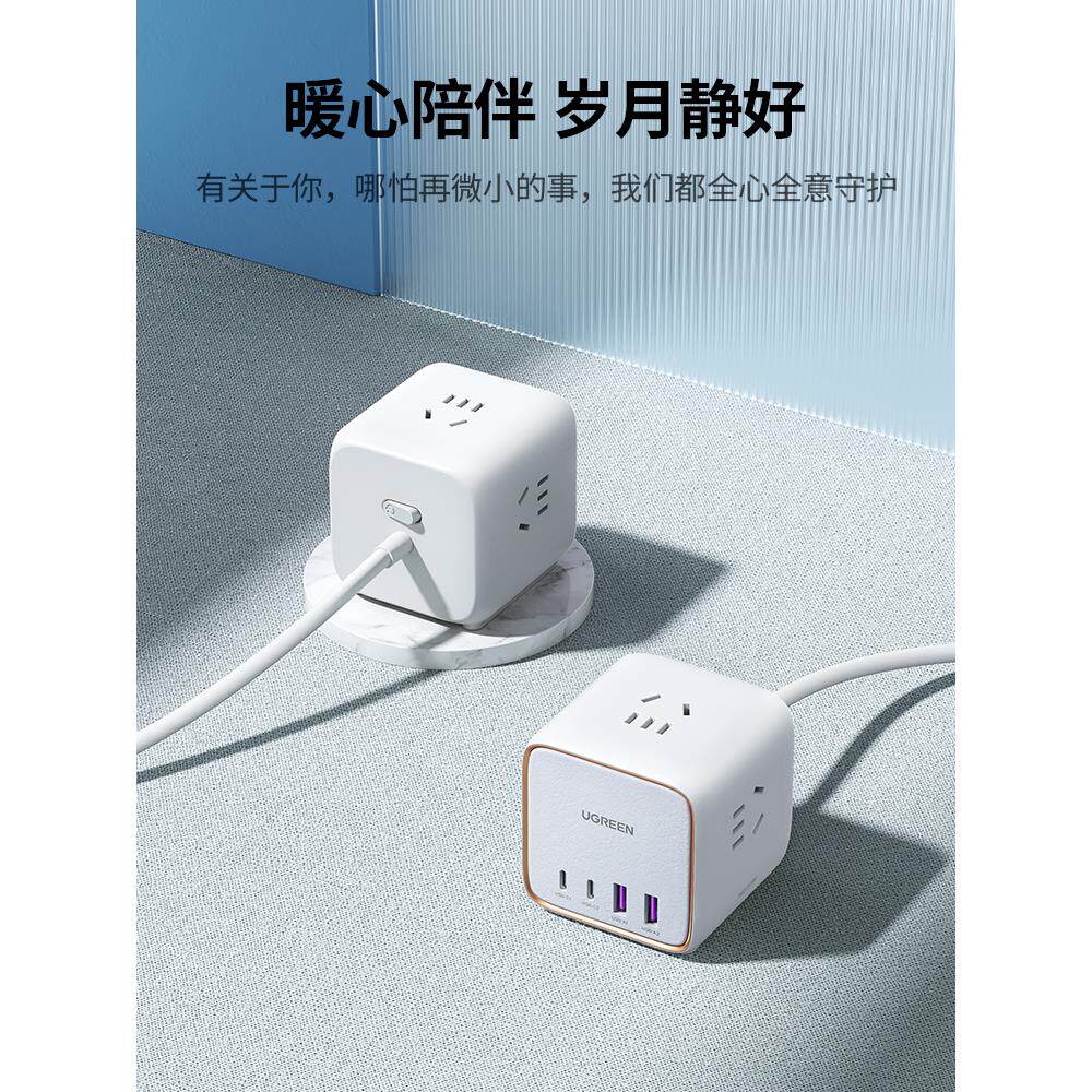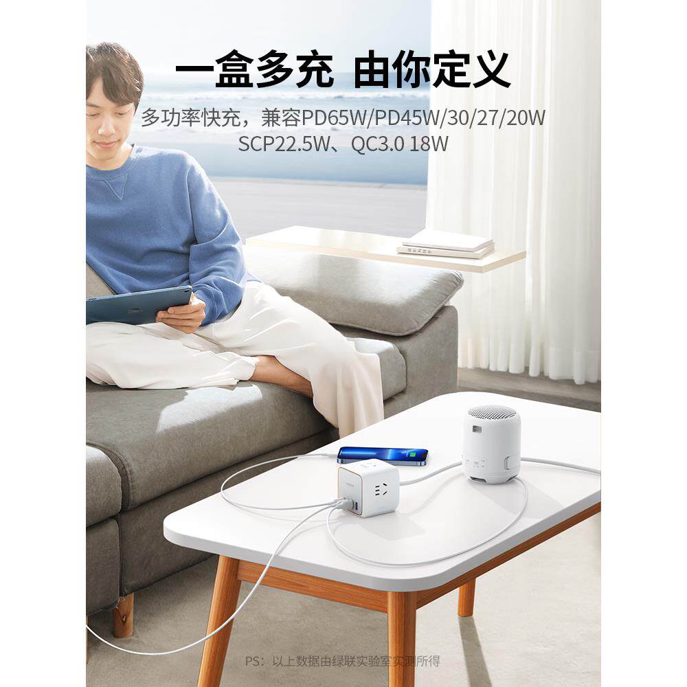 绿联智充魔盒智能插座65W氮化镓typec排插桌面多功能用USB接线板