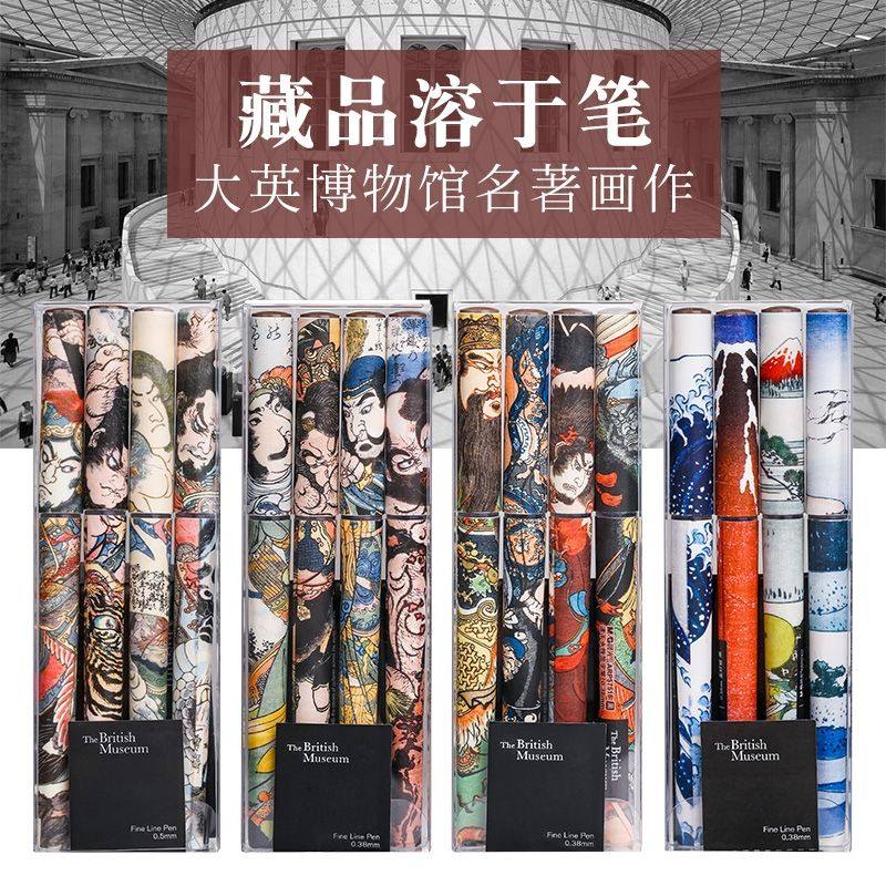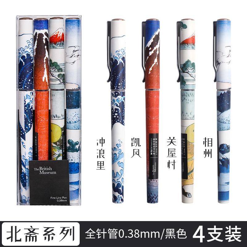 晨光文具大英博物馆速干水性签字笔直液式学生中性笔拔盖全针管黑