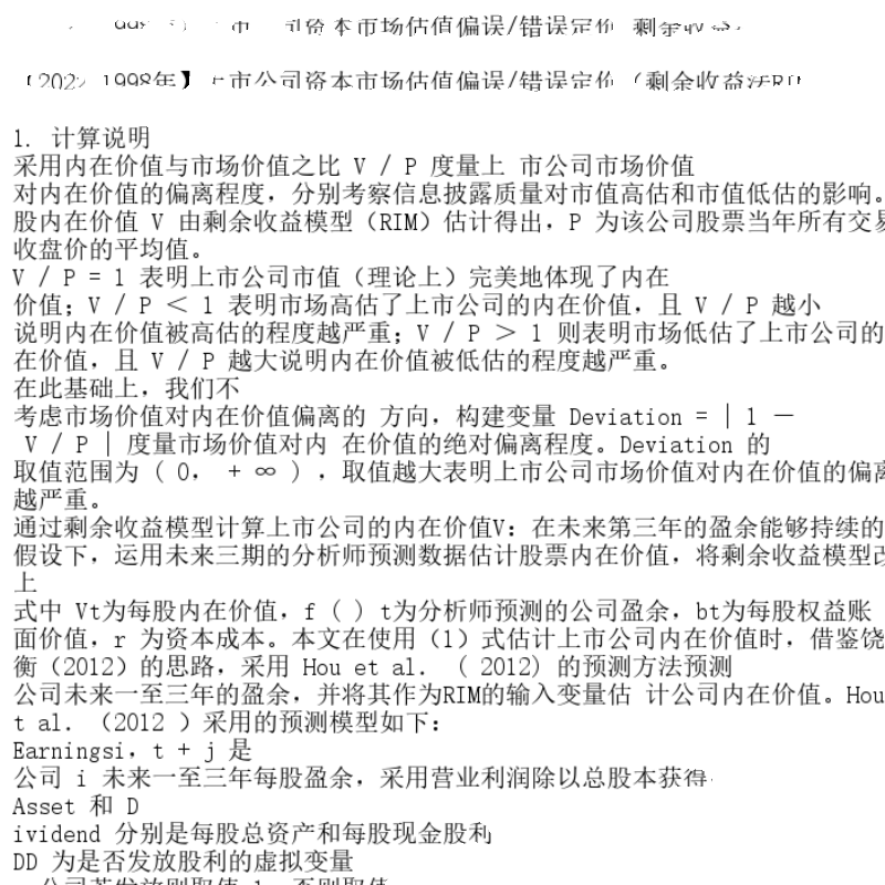 【2022-1998年】上市公司资本市场估值偏误/错误定价(剩余收益法