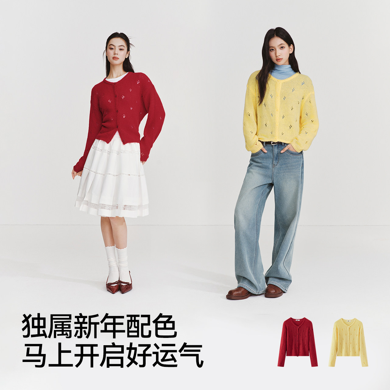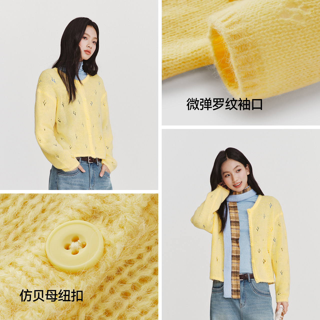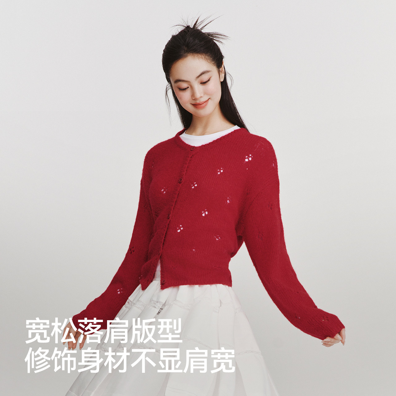 森马针织开衫女春季短款镂空宽松落肩圆领2026新款温柔系慵懒上衣
