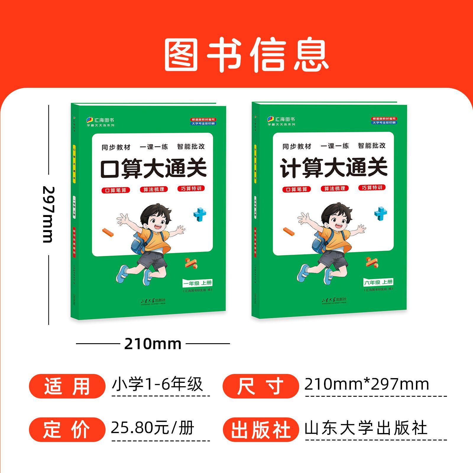 2026新版口算计算大通关一二年级三年级四五六年级下册数学人教版同步辅导一课一练小学思维训练汇海图书数学口算大通关计算天天练
