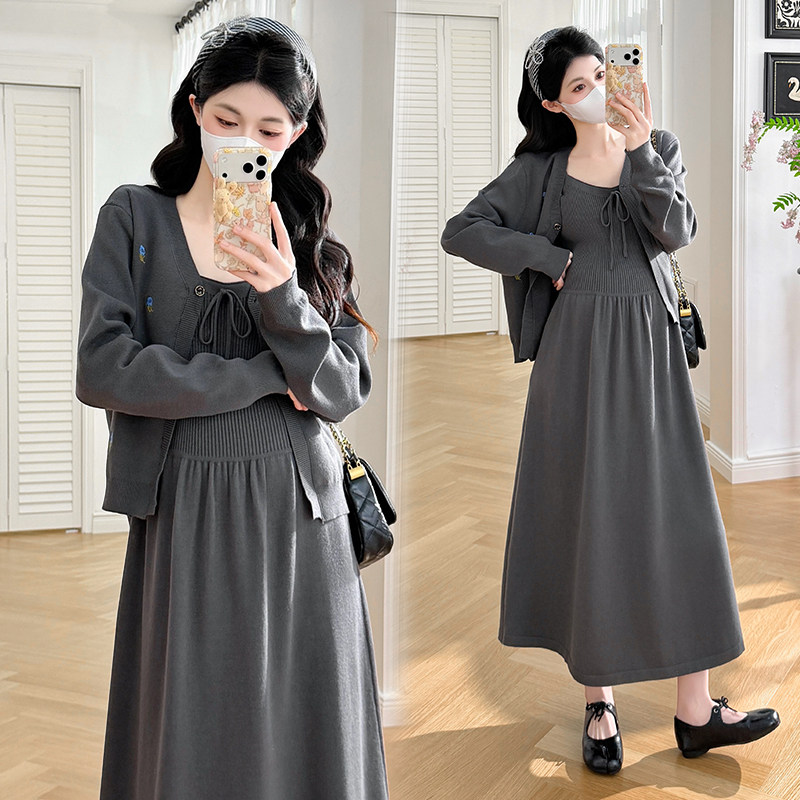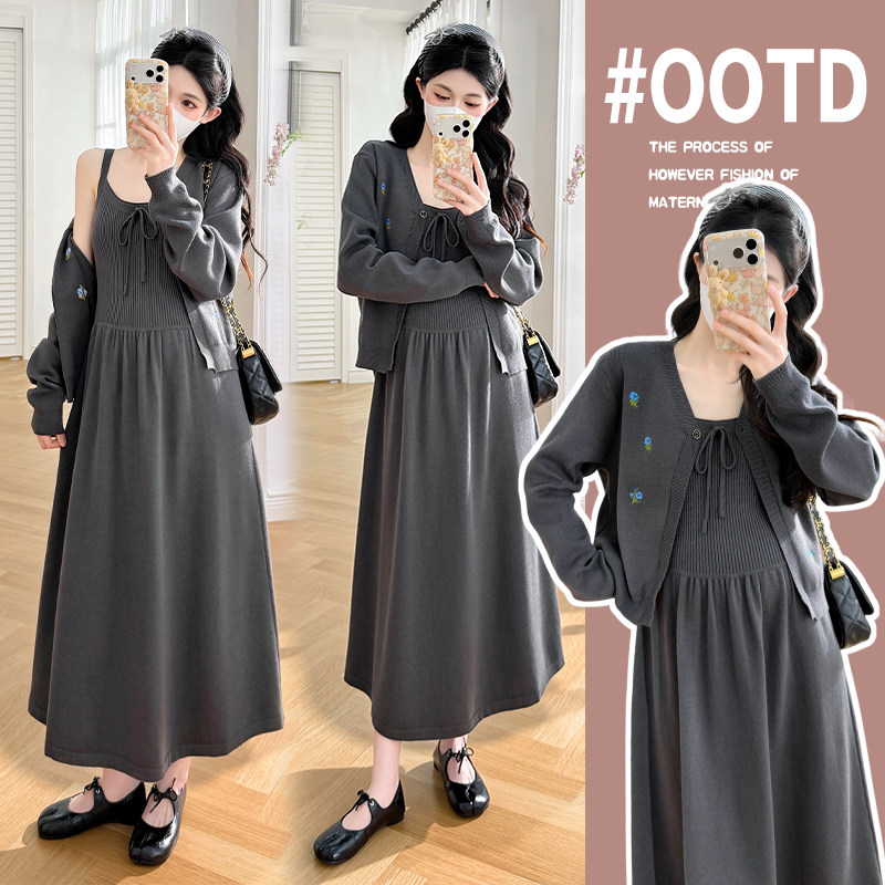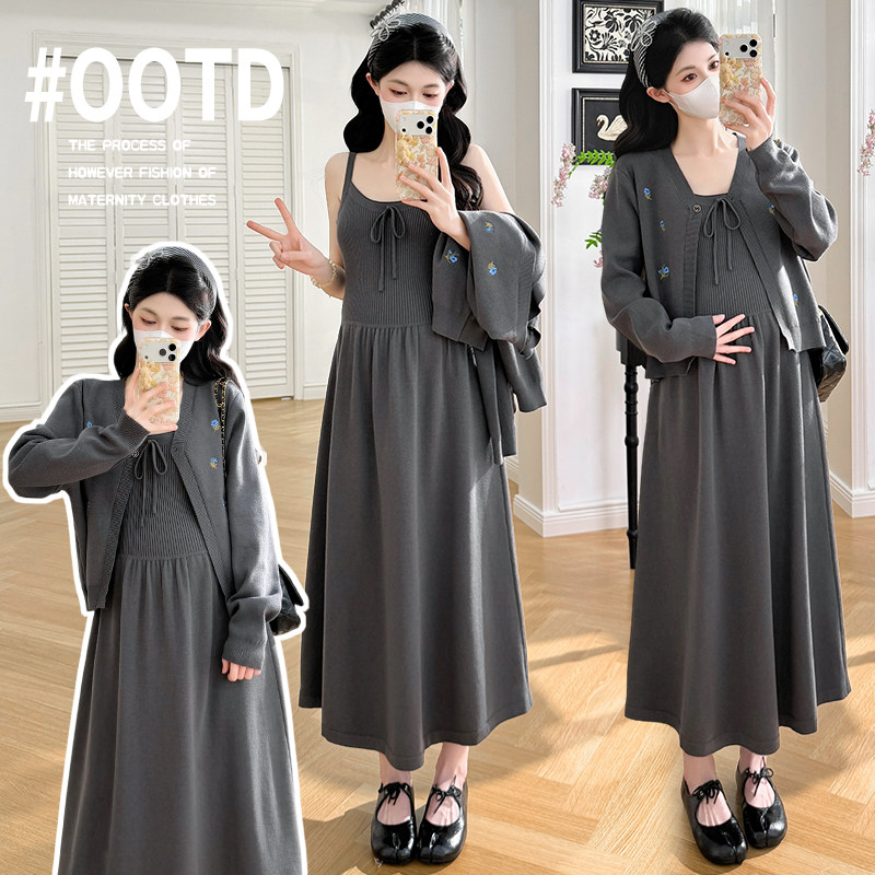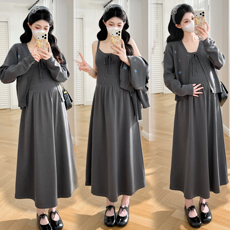 婧麒春季孕妇连衣裙2026新款长袖宽松显瘦遮肚洋气两件装孕妇裙子