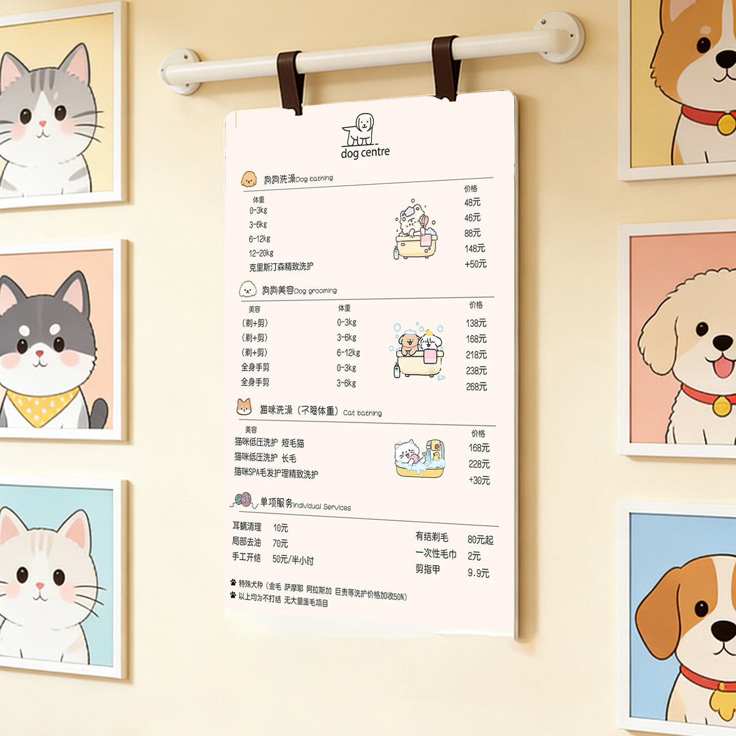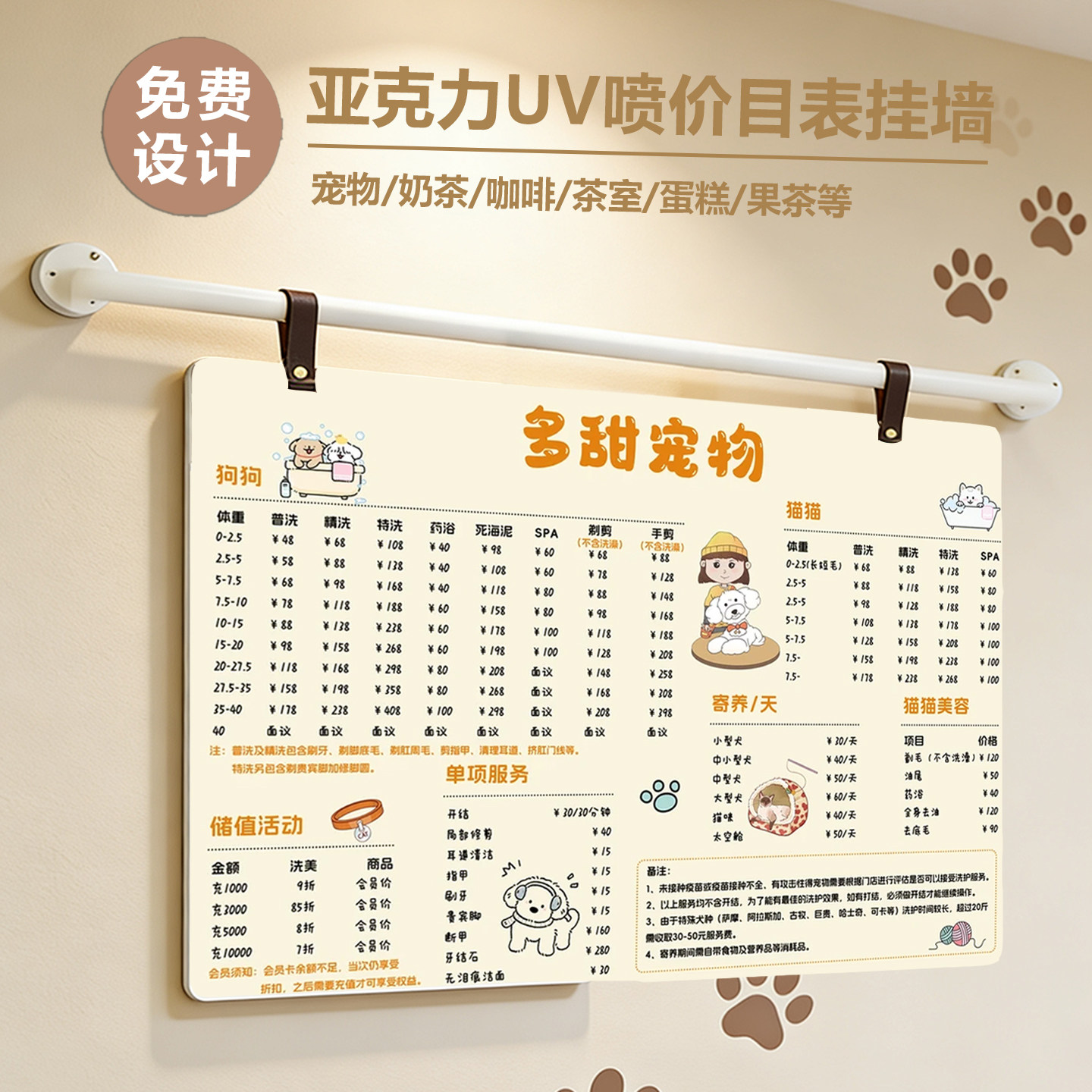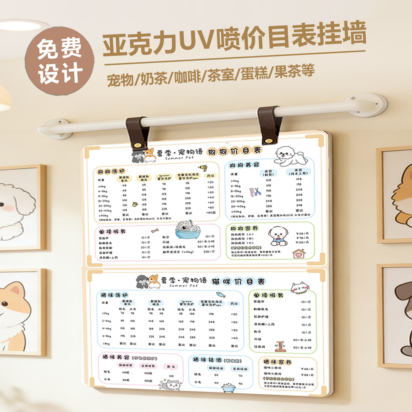 宠物店价目表海报定制悬挂款亚克力展示牌可更换亚克力价目表挂墙