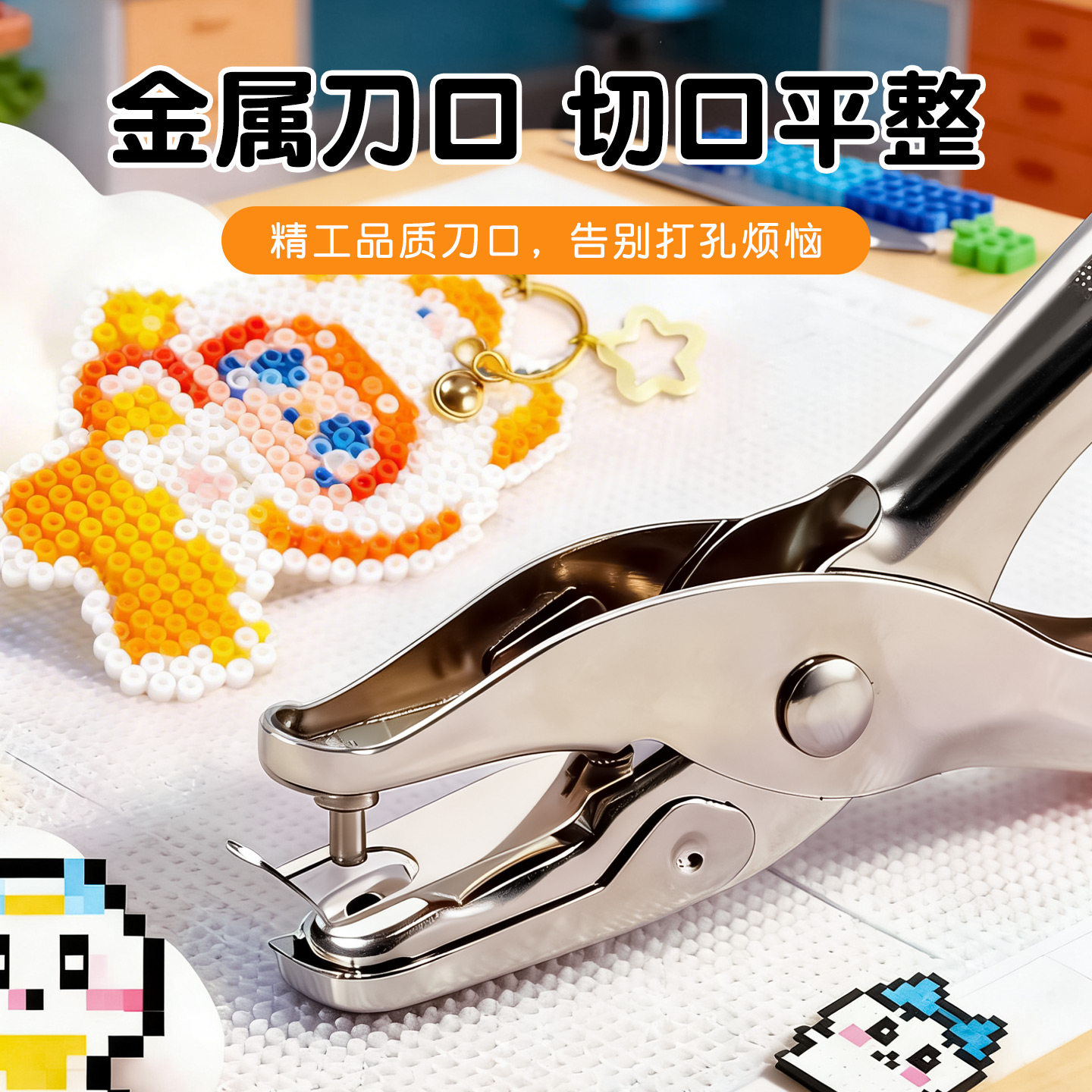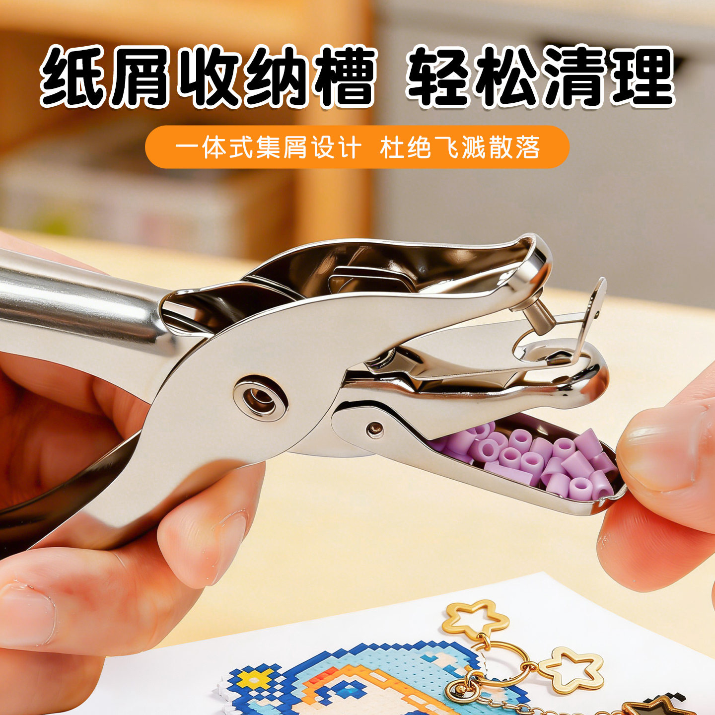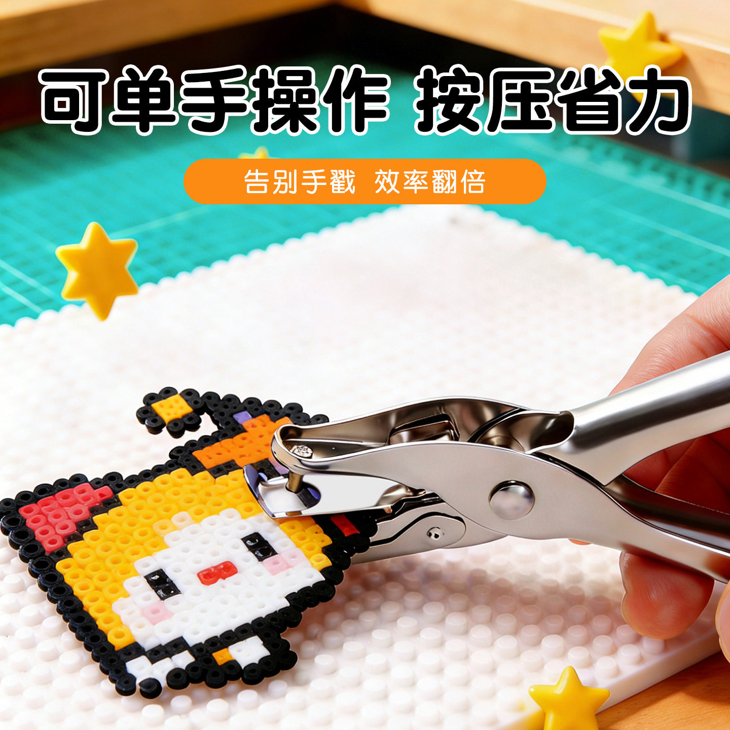 拼豆打孔器省力打洞儿童DIY自制可爱卡通拼豆钥匙扣书包挂件防滑打孔机按压快速开孔小学生便捷装订本子工具