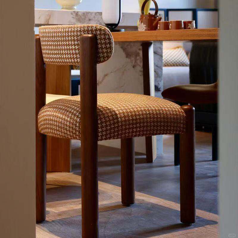 实木餐椅家用餐厅餐桌椅子客厅茶桌木头凳子靠背中古风洽谈书桌椅