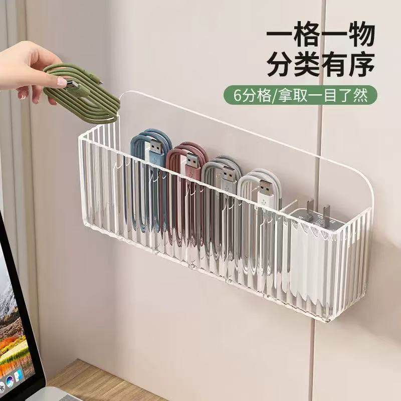 数据线收纳盒家用免打孔墙上手机充电器整理神器电线壁挂桌面多格